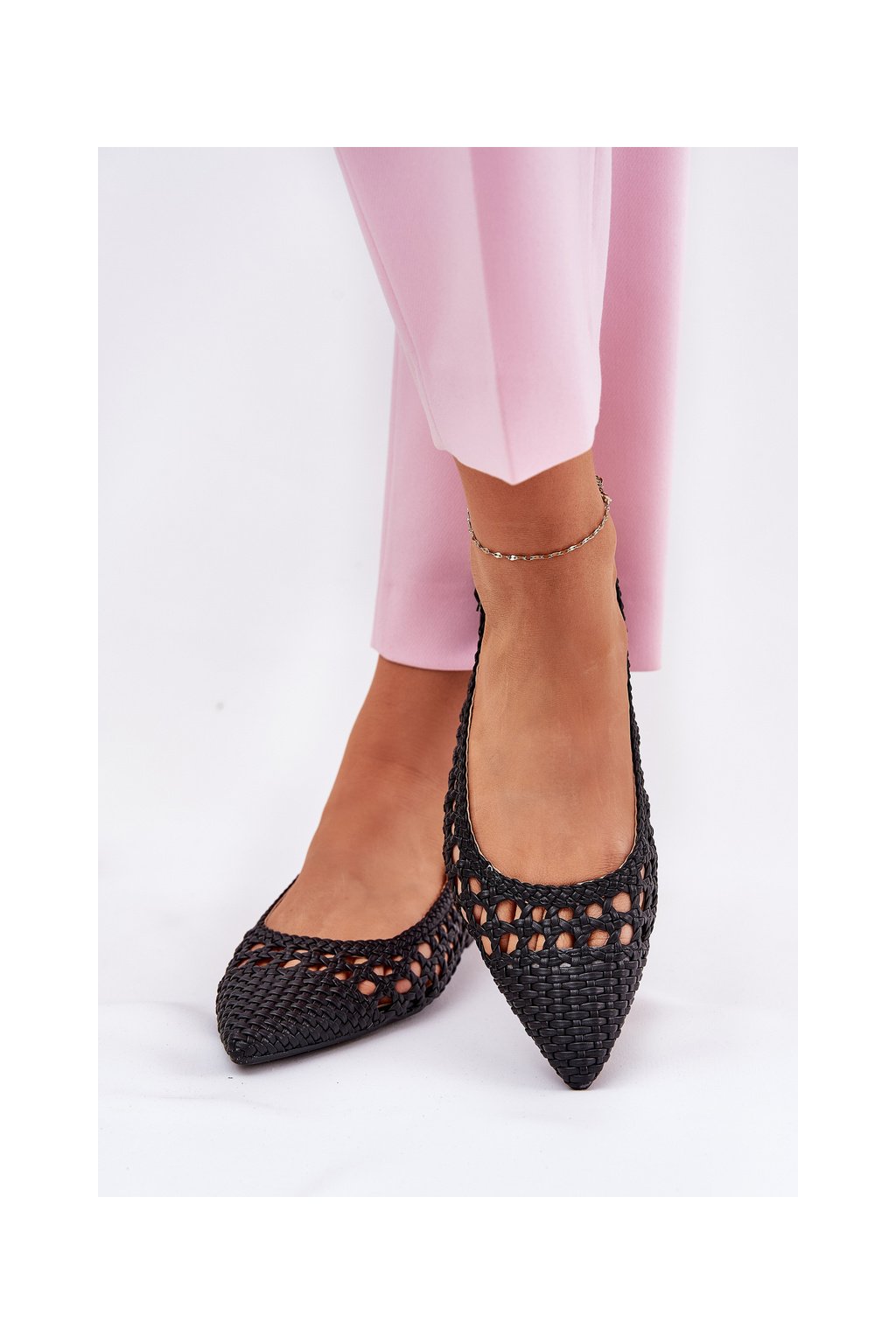 Čierne dámske syntetické baleríny s vyšívaným vzorom na rovnej podrážke FY35-3 BLACK