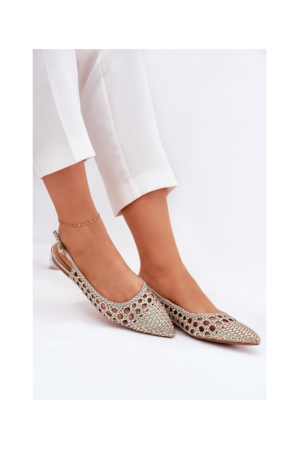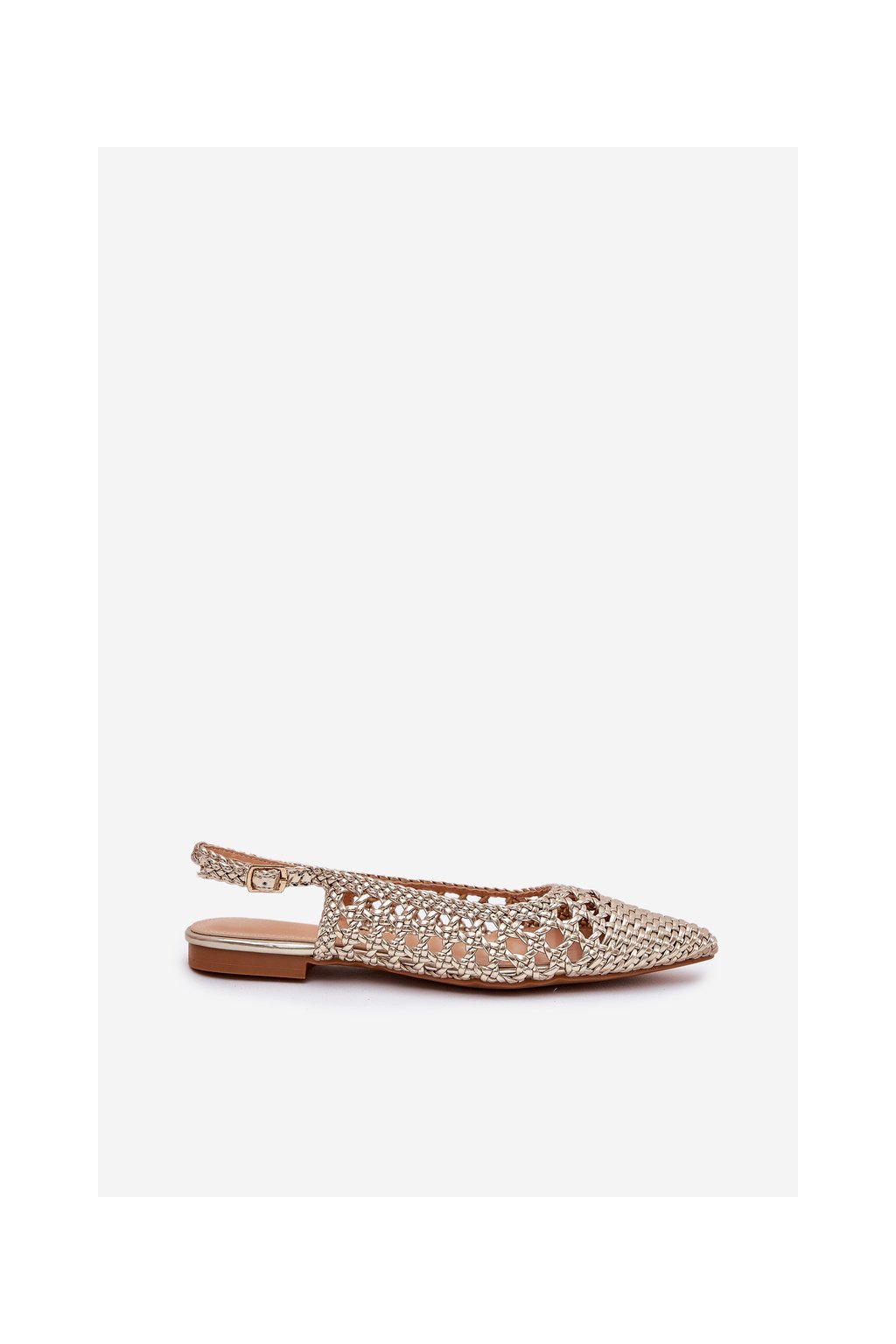 Zlaté dámske syntetické baleríny s vyšívaným vzorom na rovnej podrážke FY35-3 GOLD
