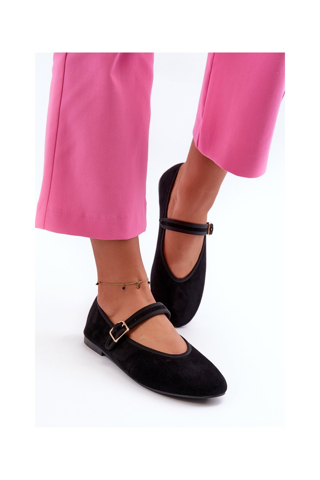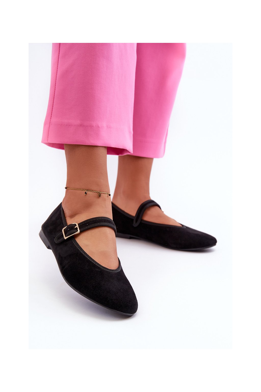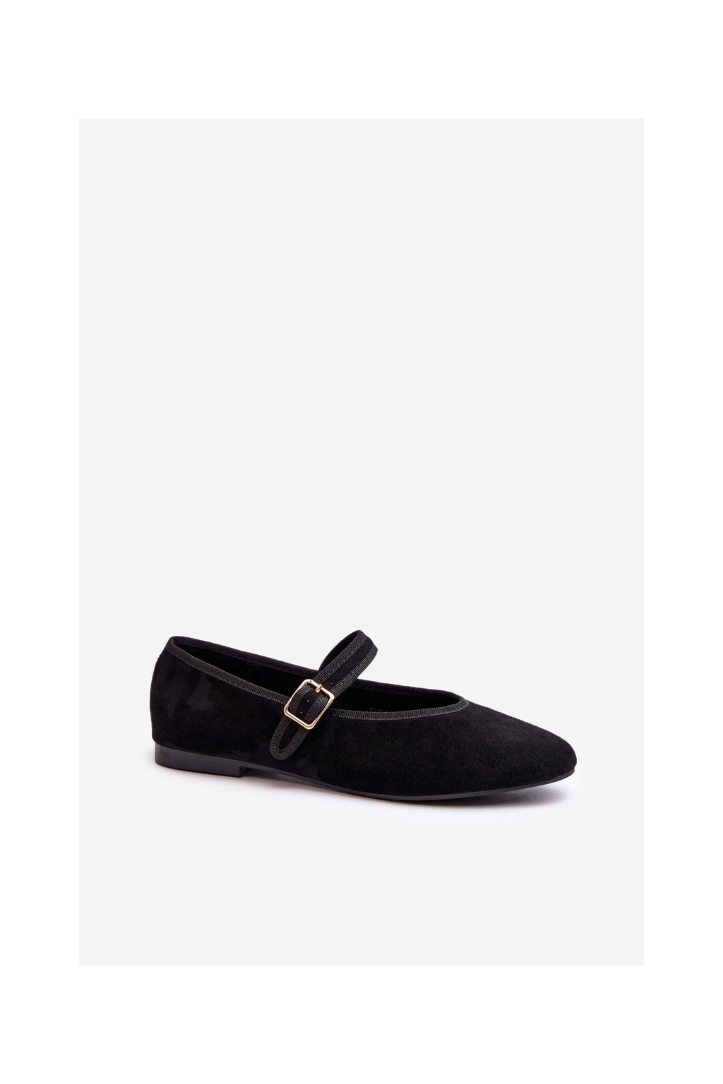 Čierne dámske balerínky z eko semišu na rovnej podrážke, kód produktu T612P BLACK