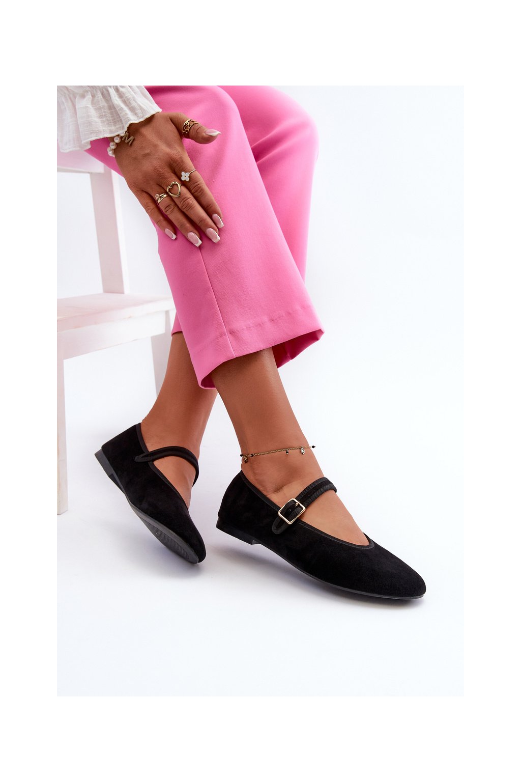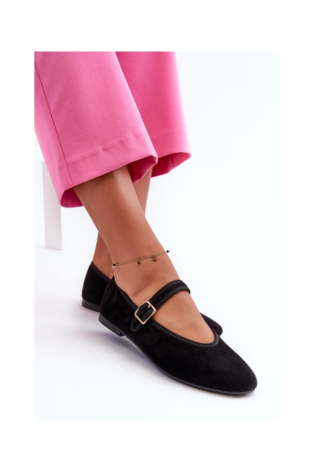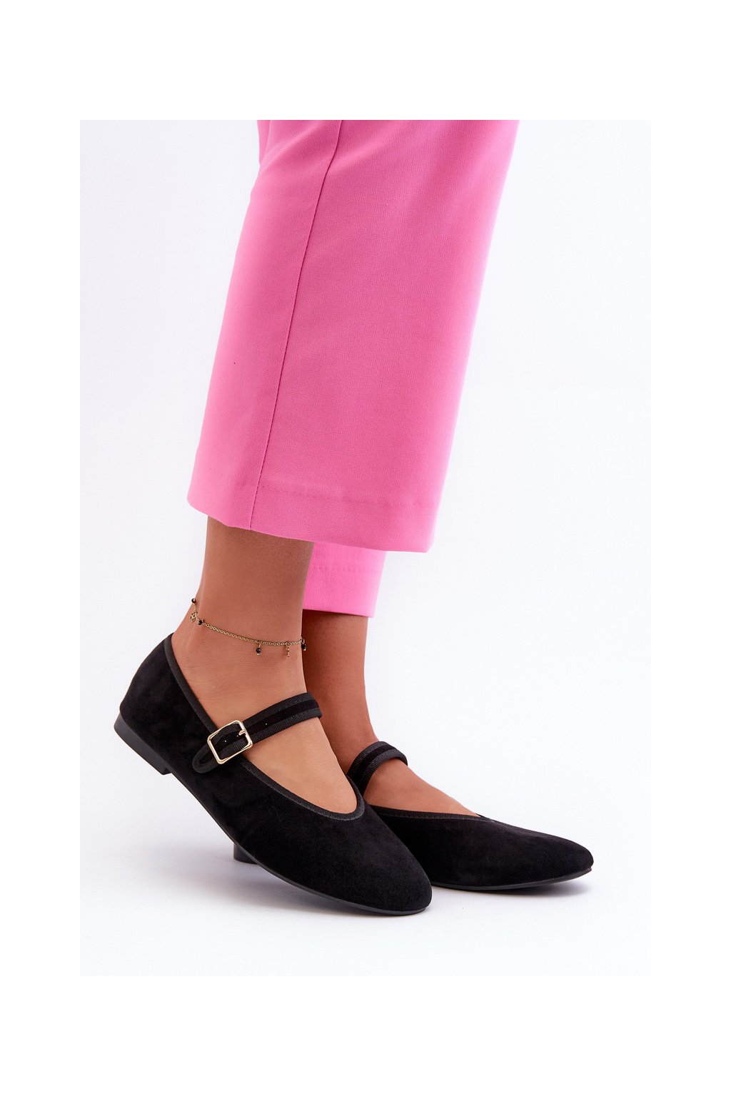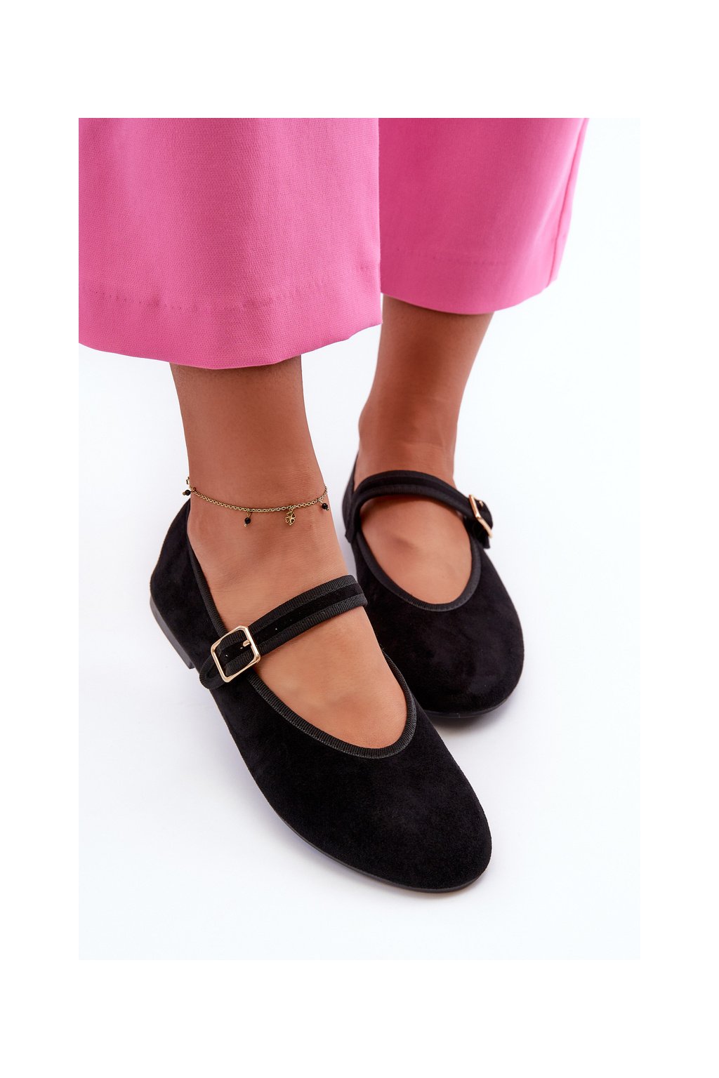 Čierne dámske balerínky z eko semišu na rovnej podrážke, kód produktu T612P BLACK