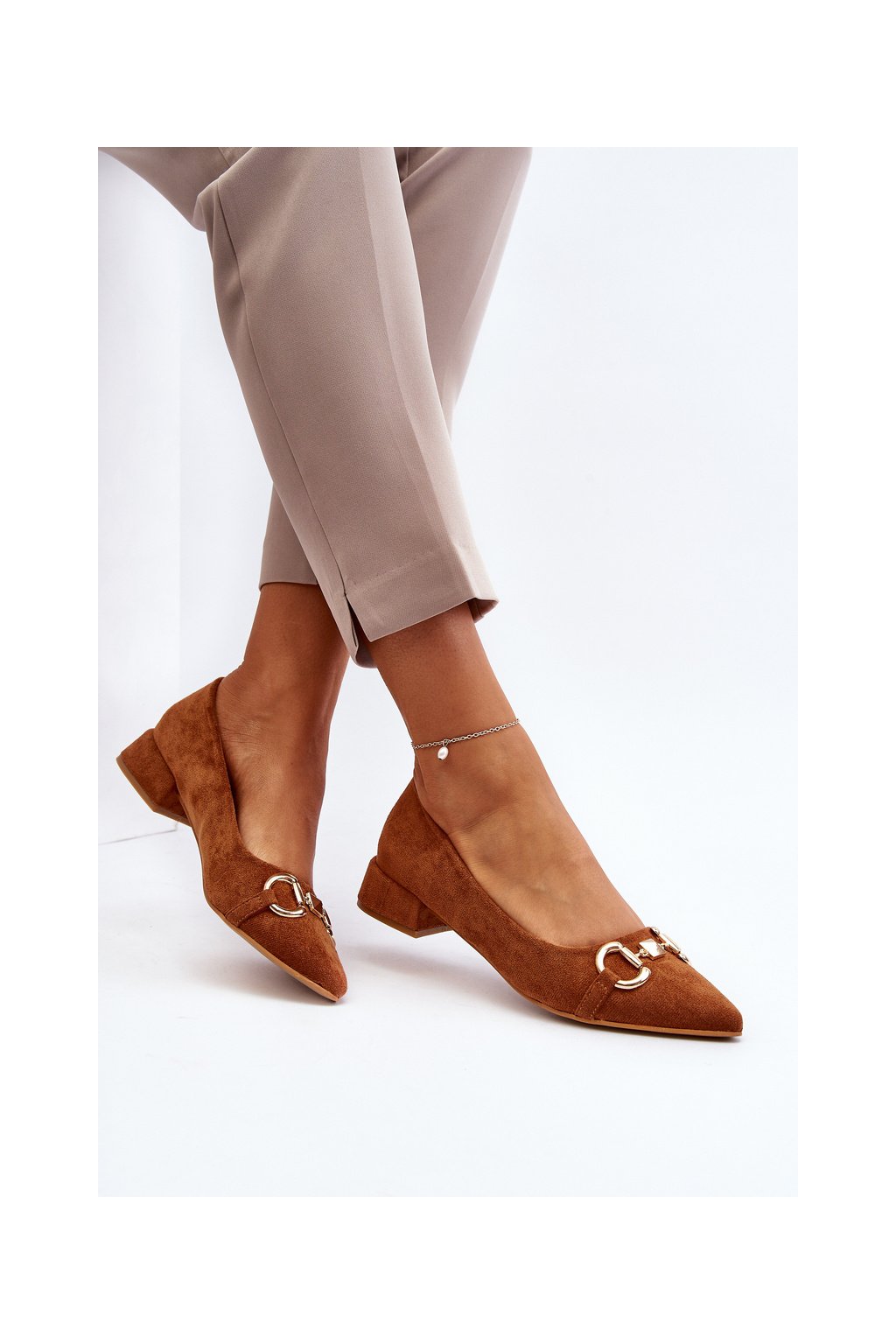Hnedé dámske balerínky z eko semišu na nízkom podpätku, kód produktu 868-8 CAMEL