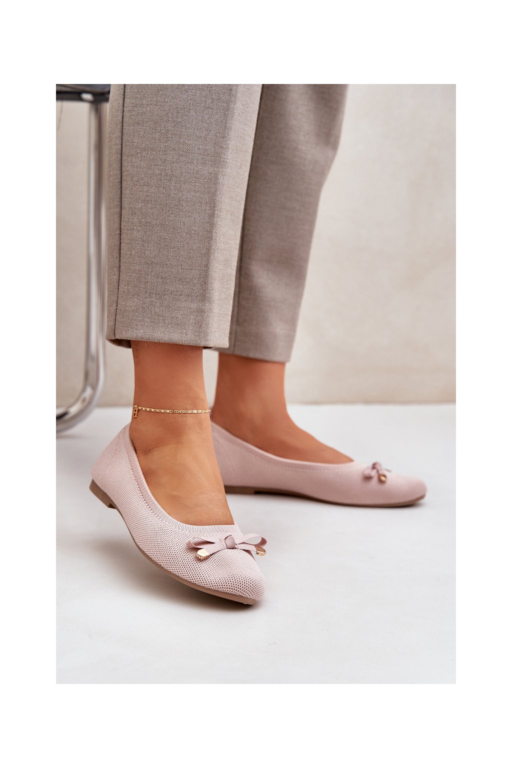 Ružové dámske textilné balerínky na rovnej podrážke, CB130-11 PINK