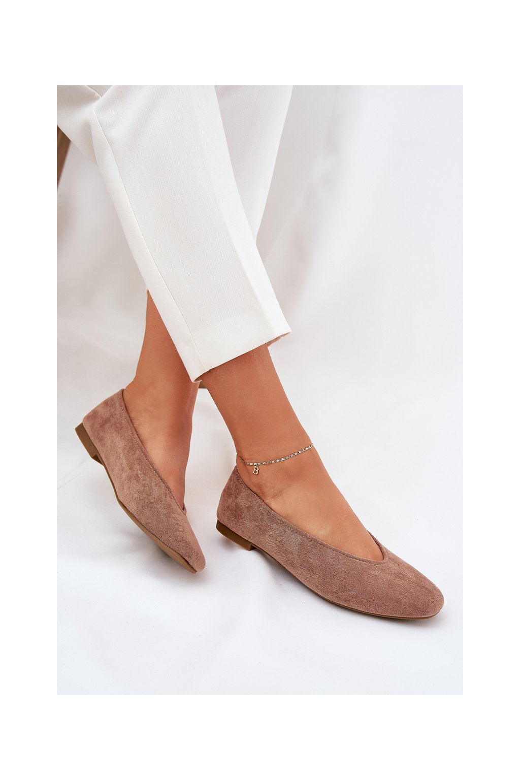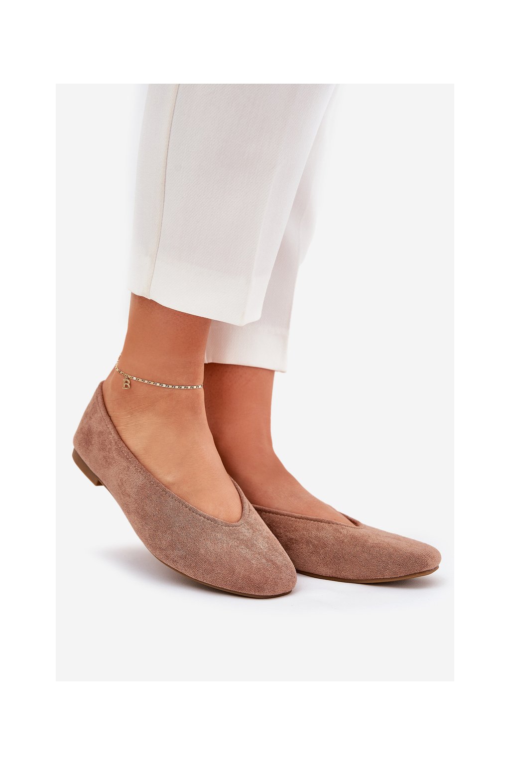 Hnedé dámske balerínky z eko semišu, kód QQ-202 KHAKI