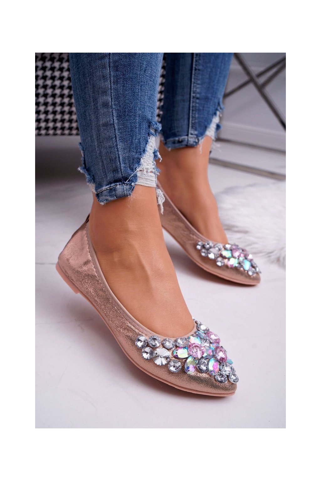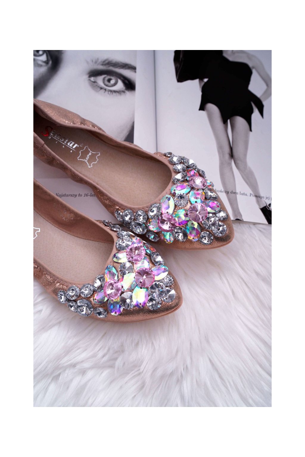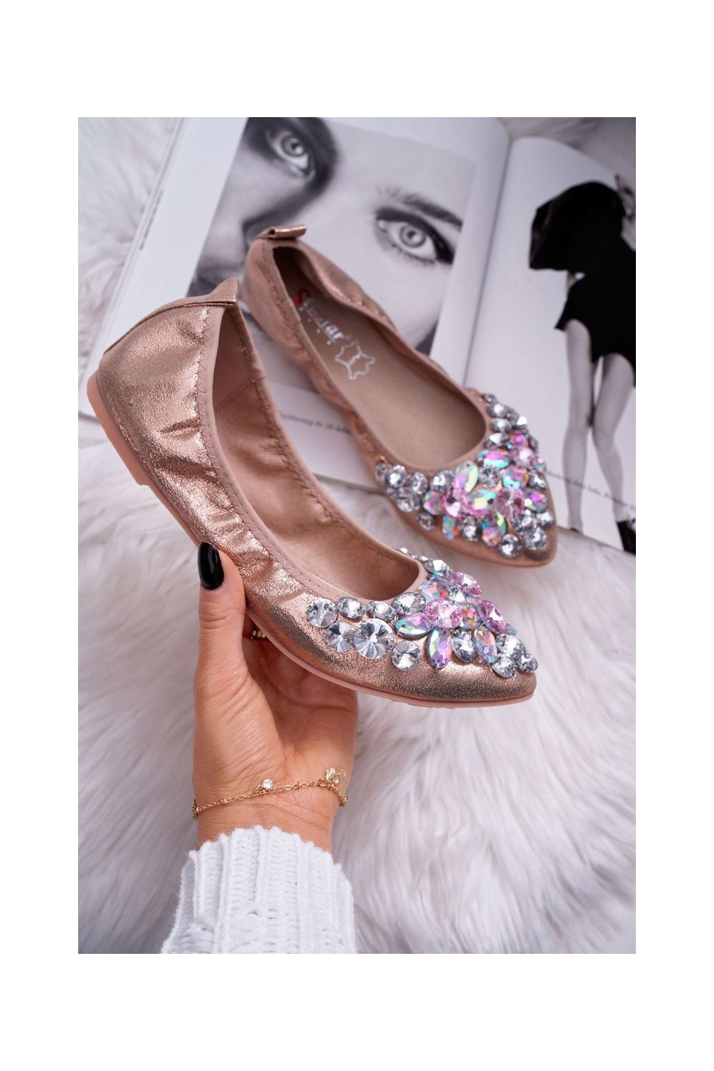 Kožené Baleríny S Ozdobnými Kameny Champagne Crystal