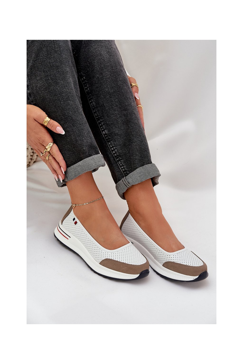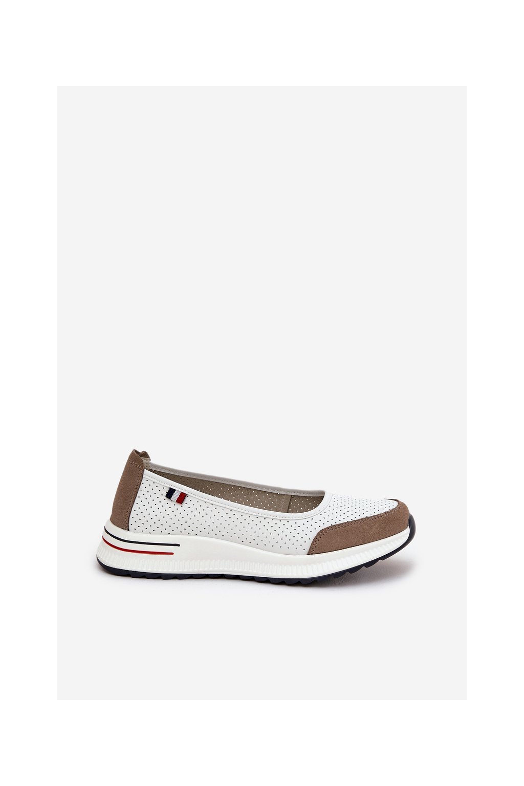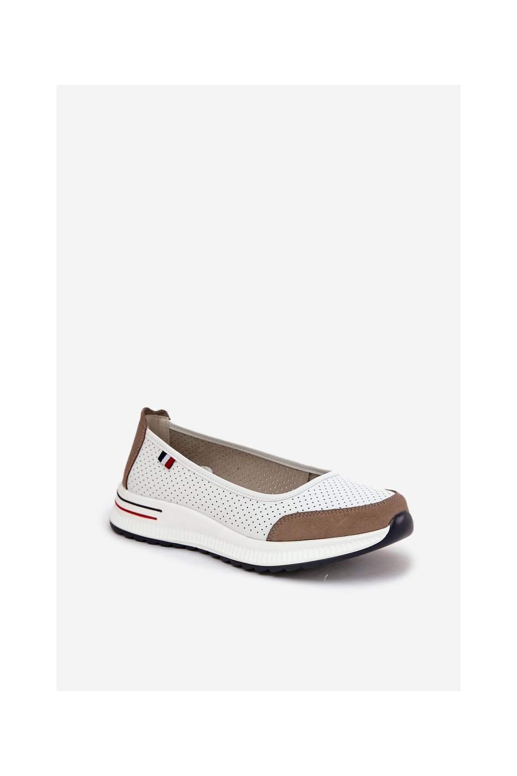 Biele dámske kožené balerínky na platforme, kód 24PB18-7815 WHT-GREY