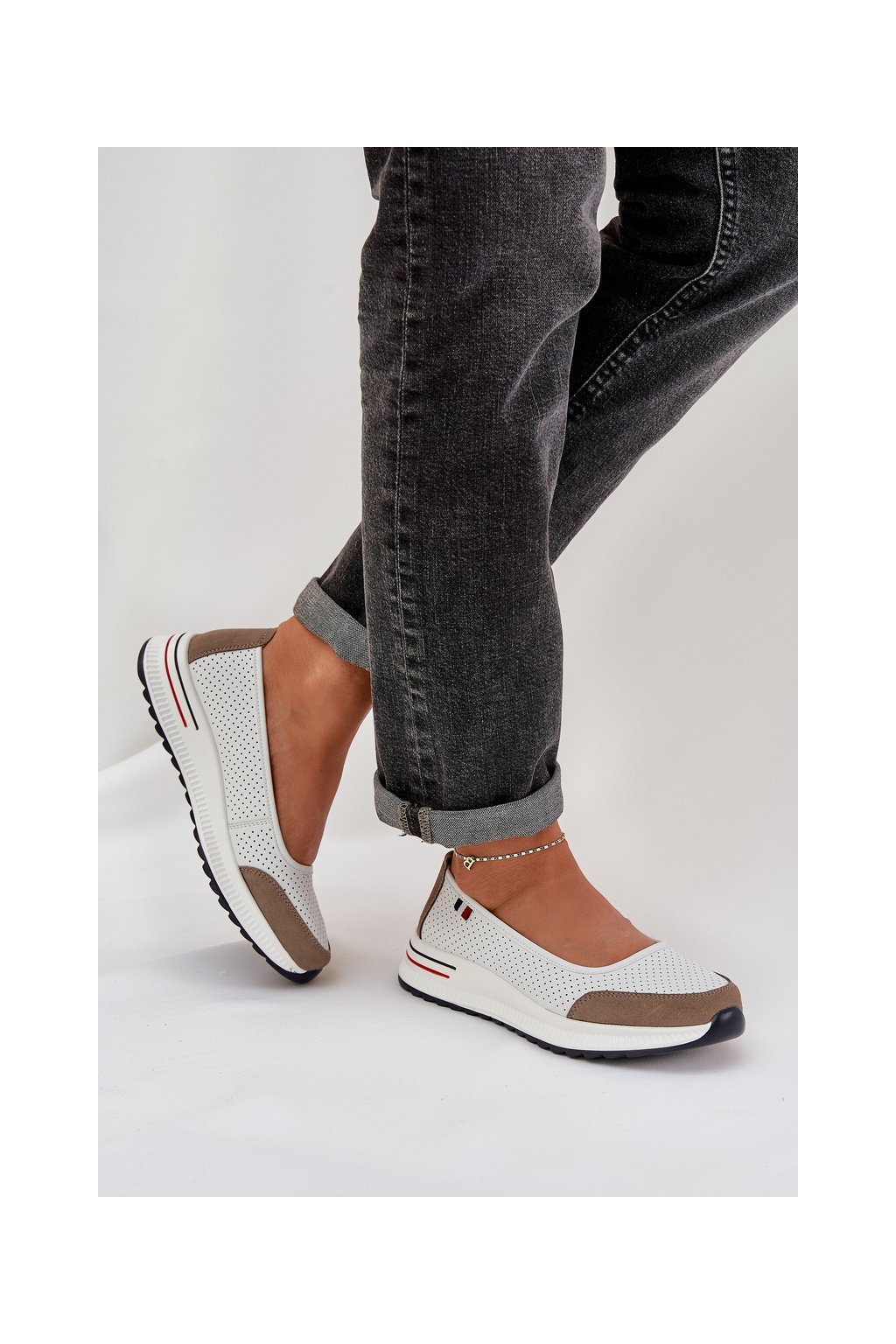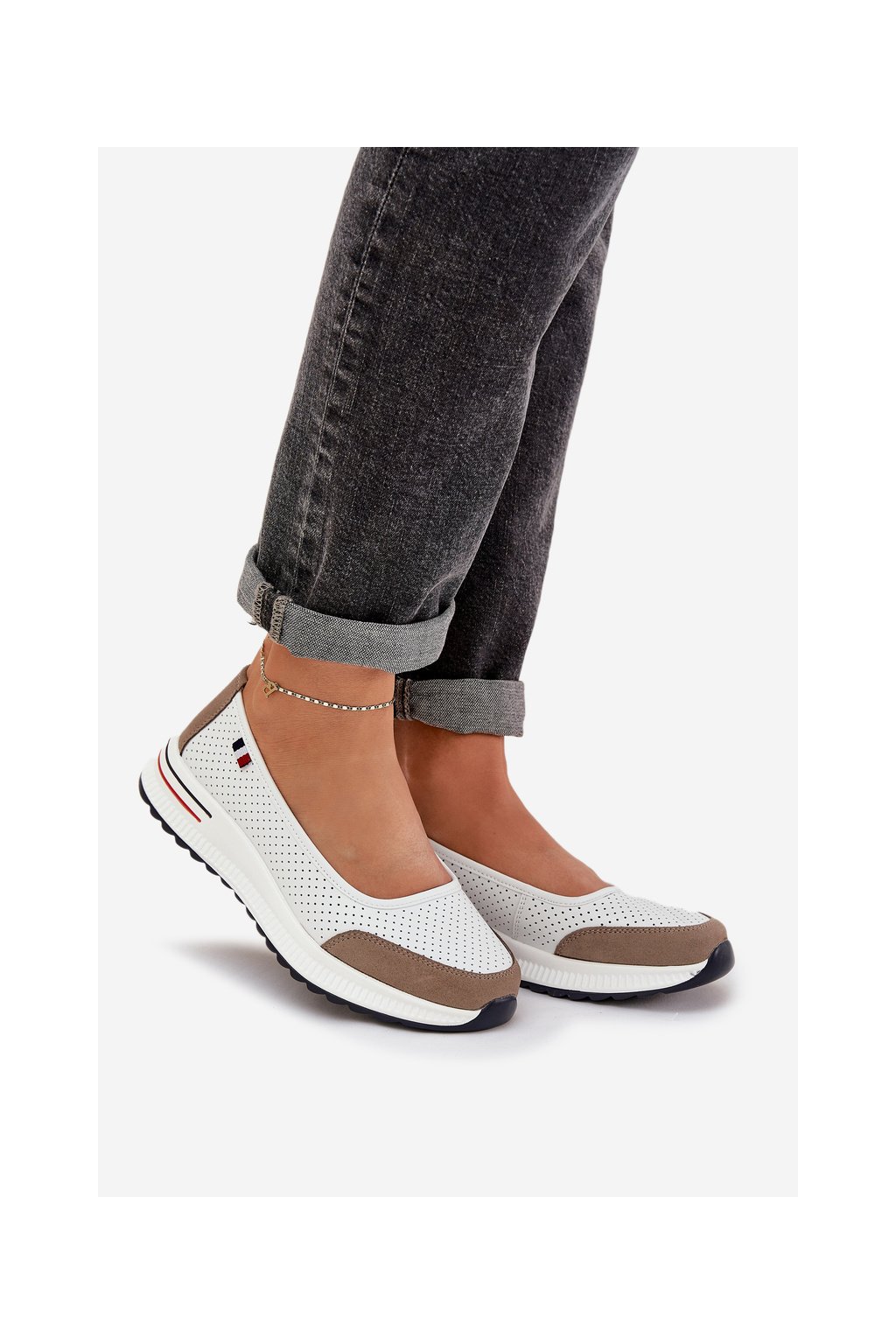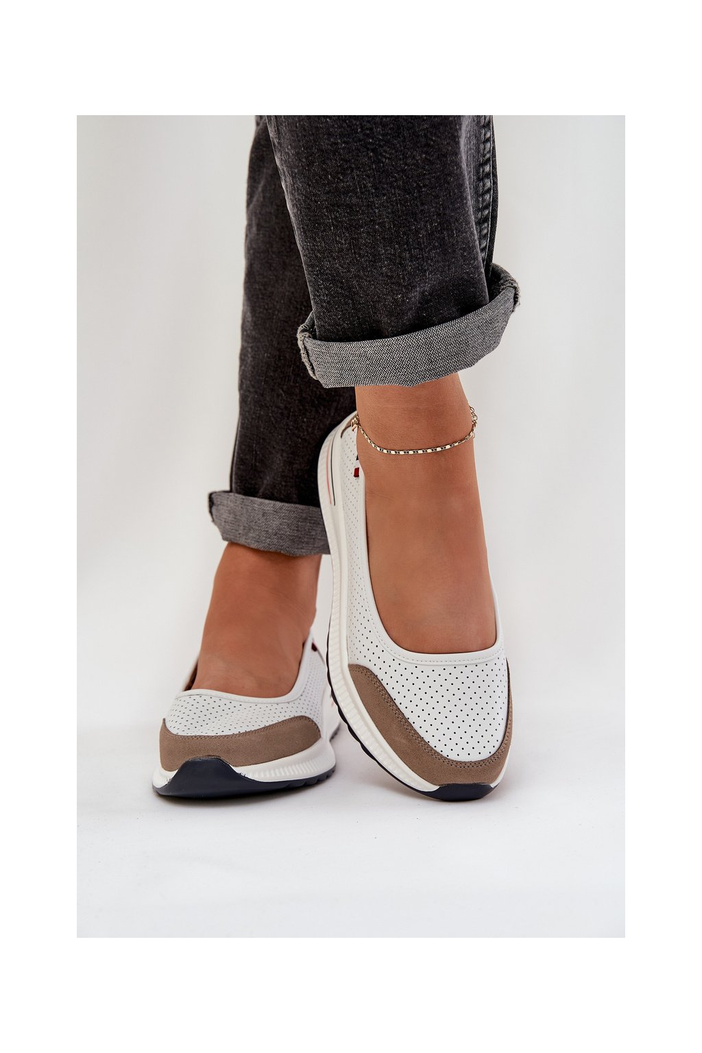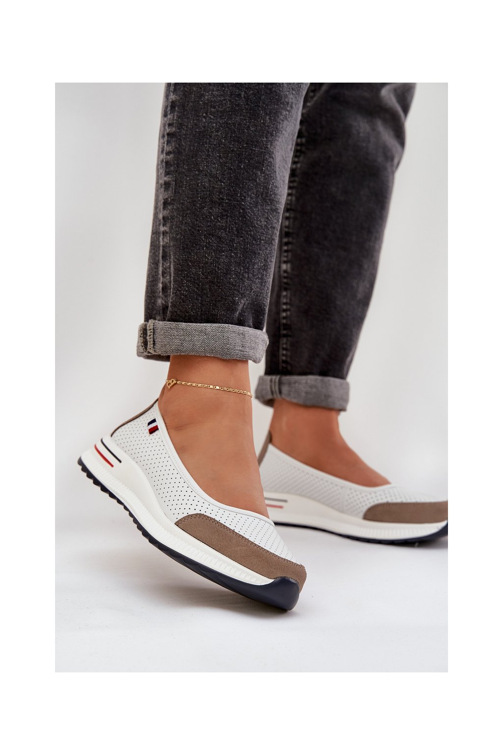 Biele dámske kožené balerínky na platforme, kód 24PB18-7815 WHT-GREY
