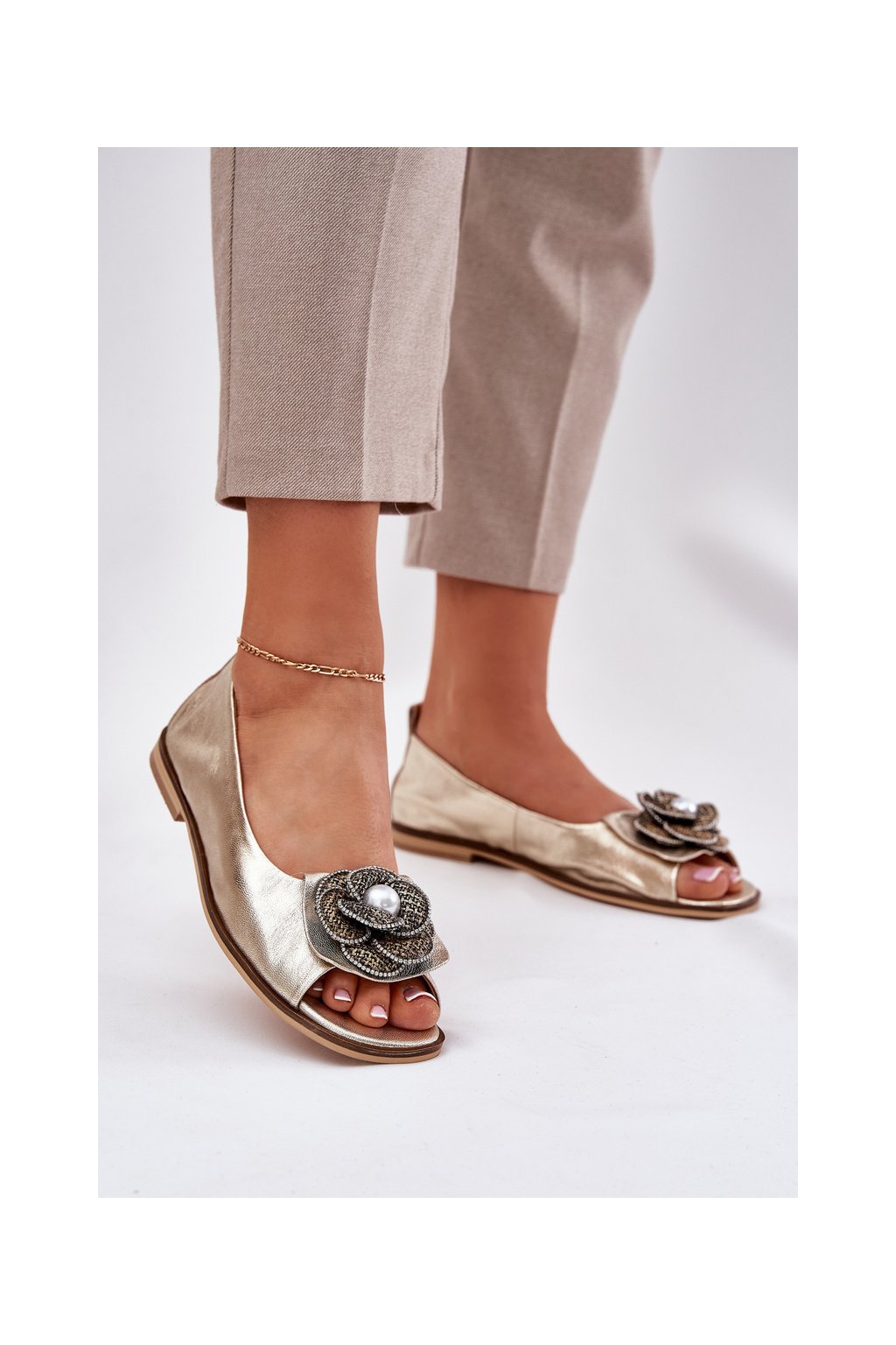 Kožené Baletky S Otevřenými Prsty A Květem Zazoo 1870 Zlaté (Veľkosť 36)