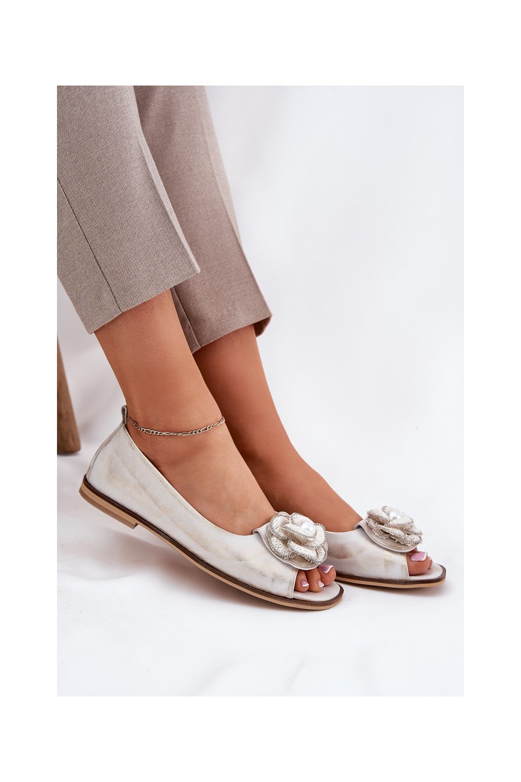 Zlaté dámske kožené baleríny s kvetom a rovnou podrážkou, kód produktu 1870 ZŁOTO P.