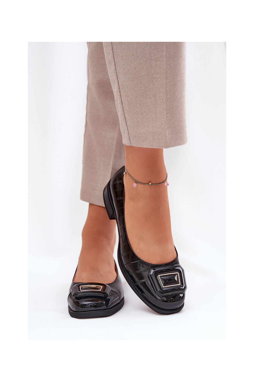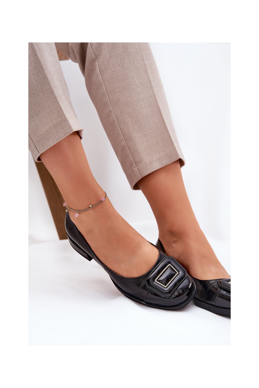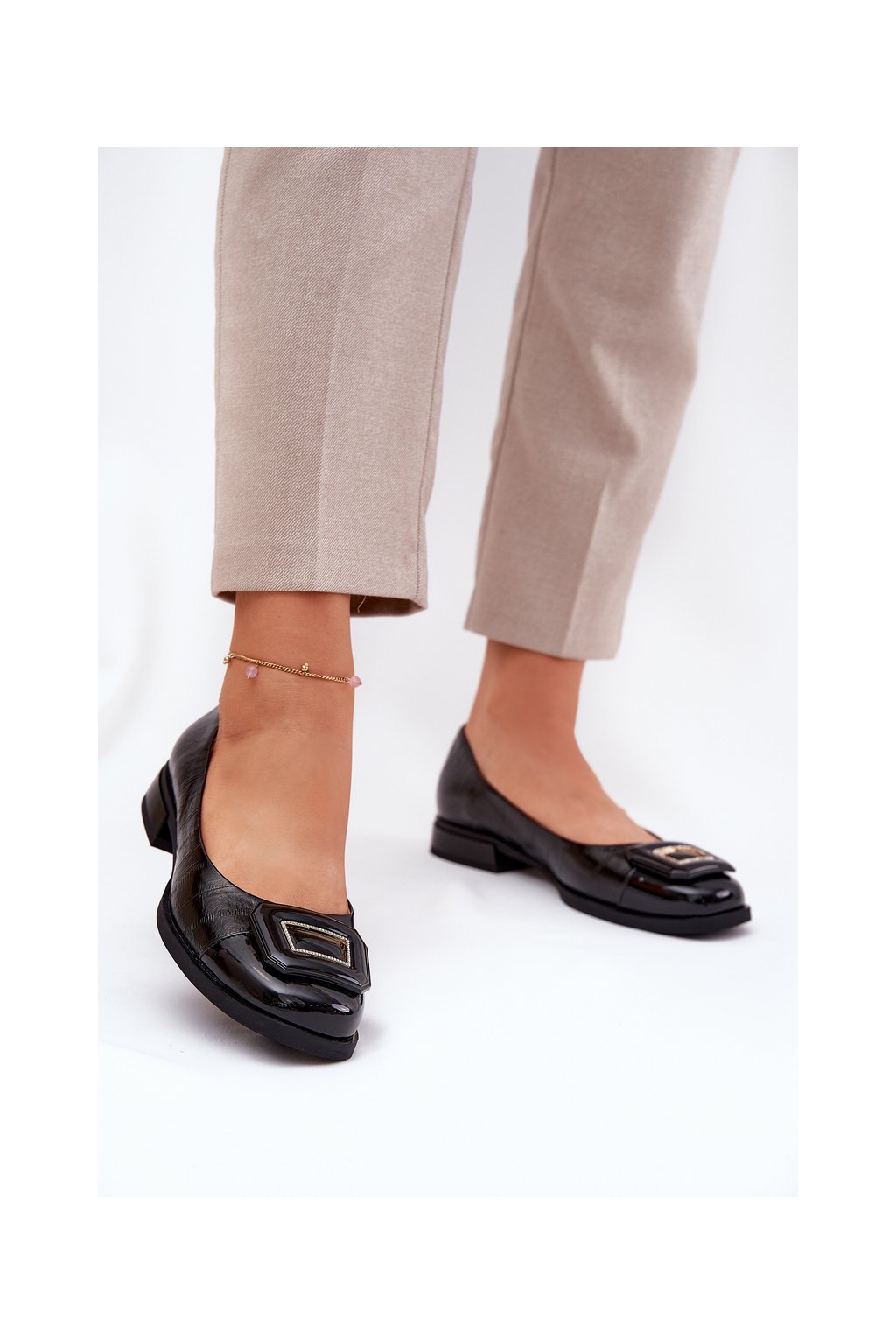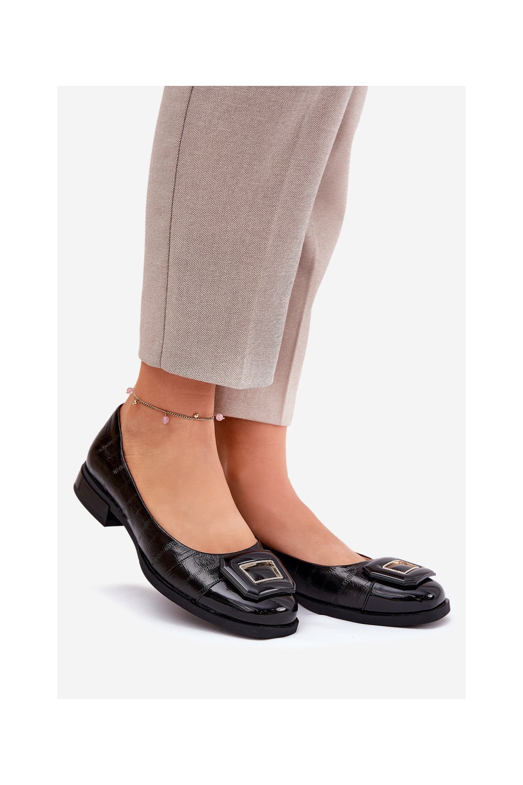 Čierne dámske kožené baleríny s ozdobou na rovnej podrážke, kód produktu MK51-059 BLACK