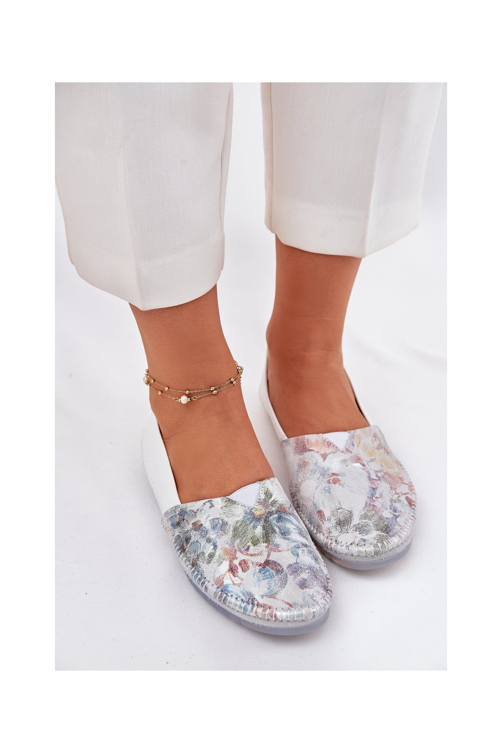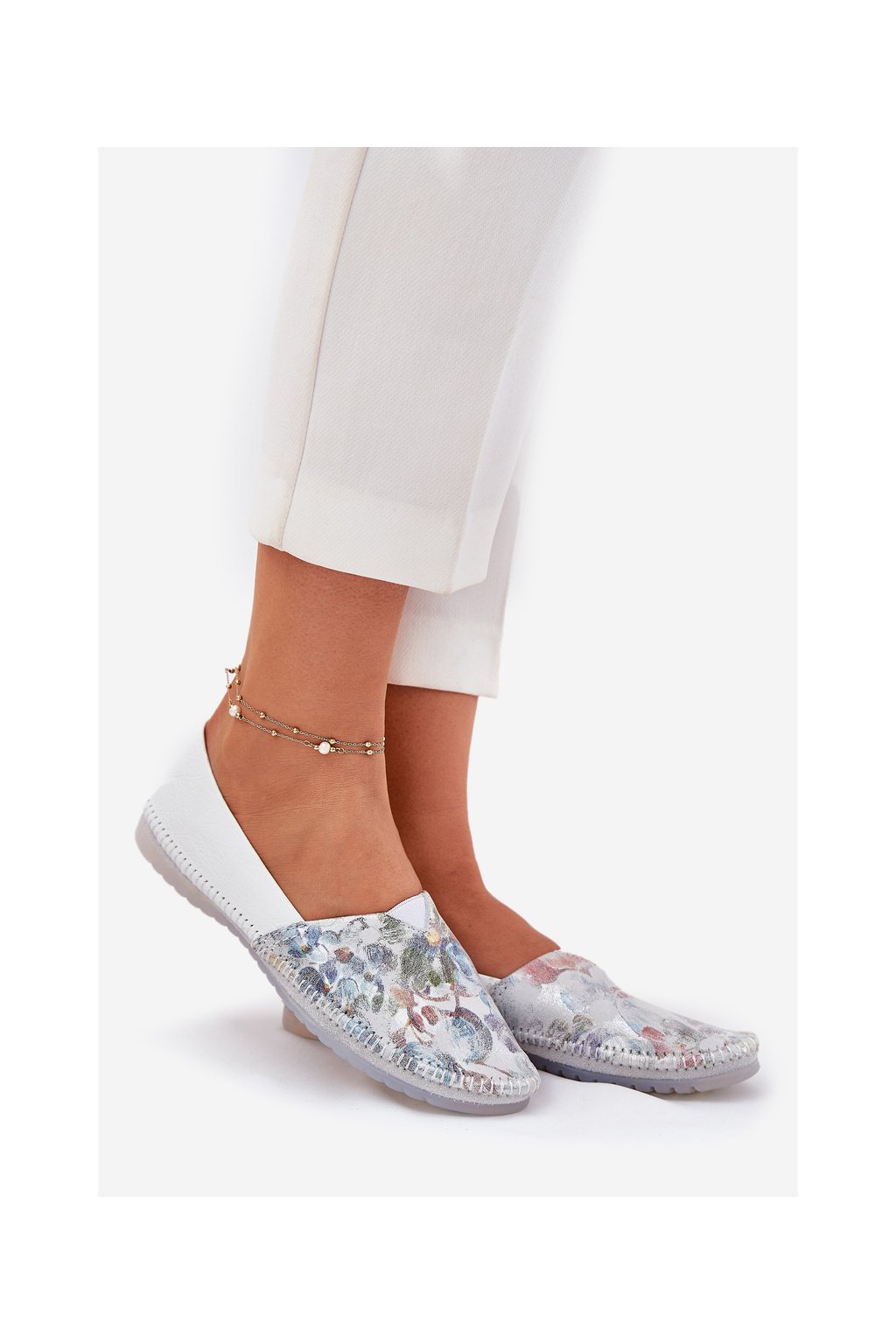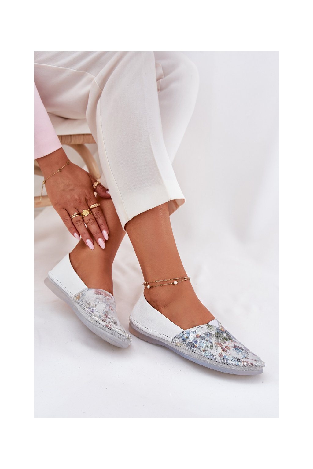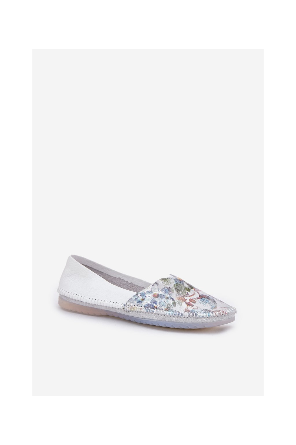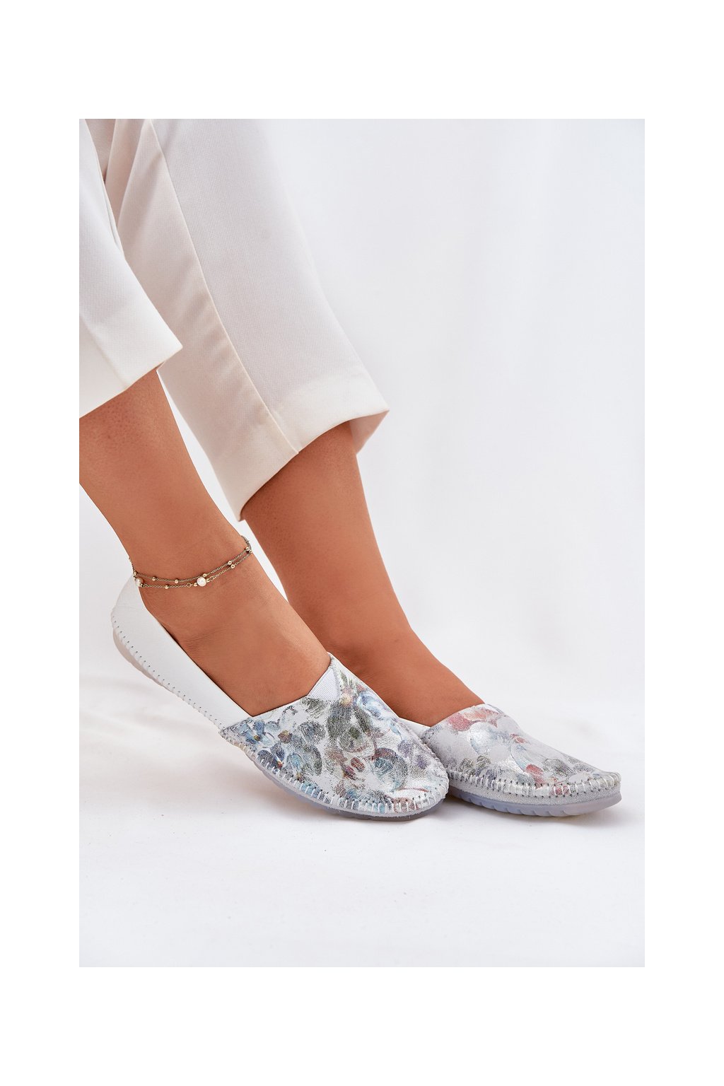 Biele dámske kožené baleríny s vzorom na rovnej podrážke Maciejka T1930-38/00-0 BIAŁY KW MUL