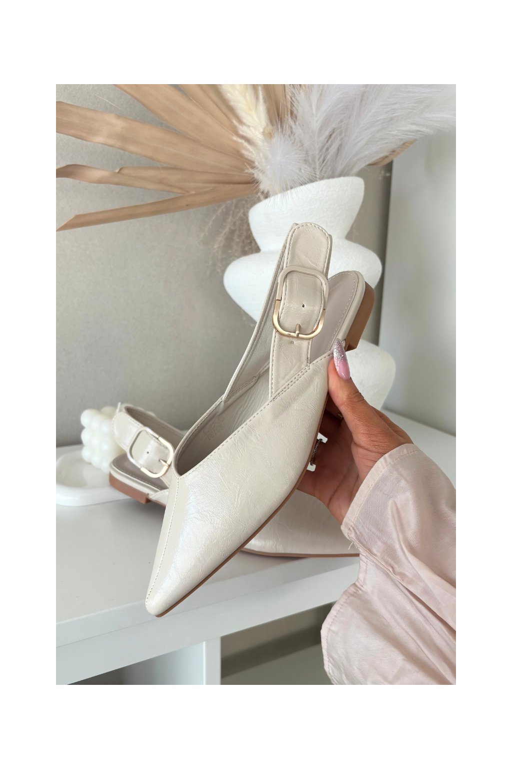 Lakované baleríny s remienkom béžove rinalle / 9732 BEIGE