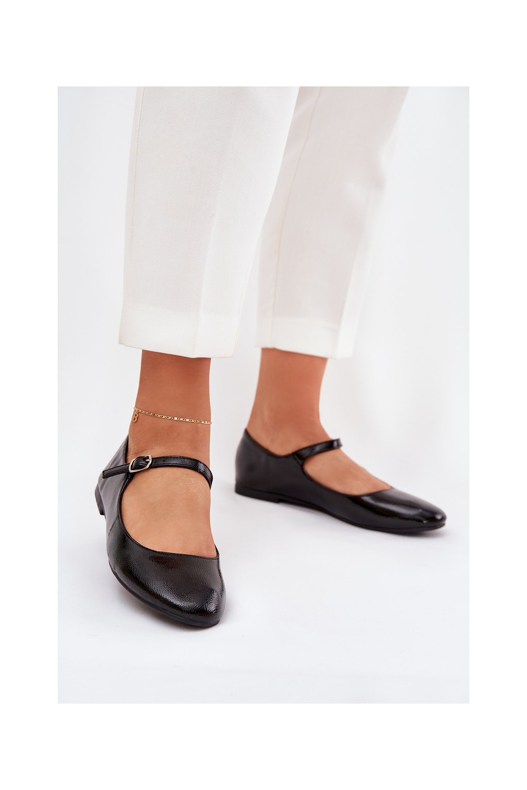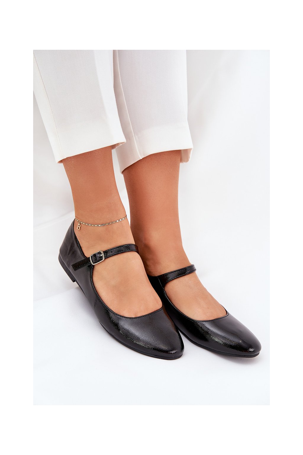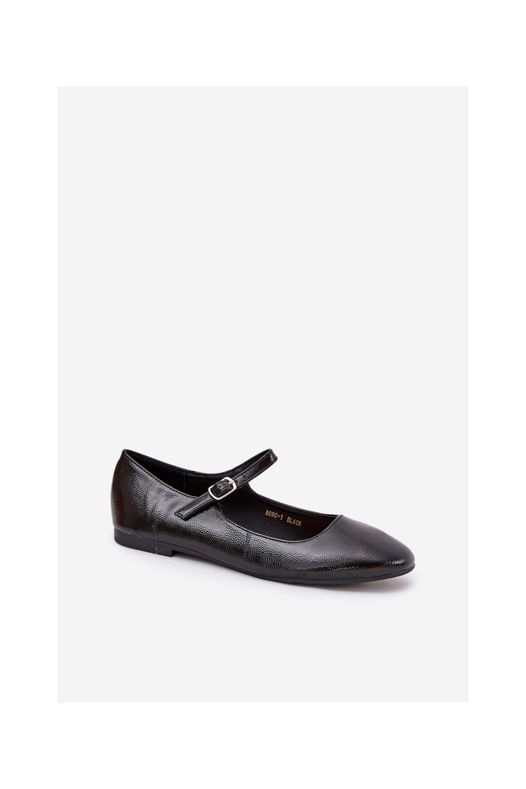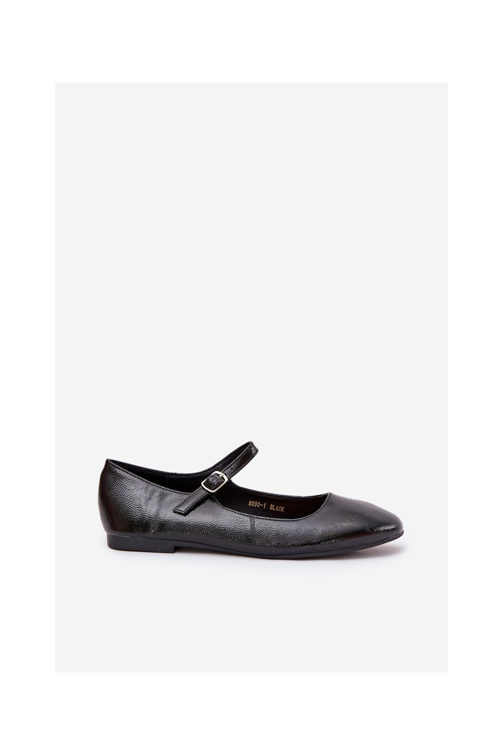 Čierne dámske lakované baletky z eko kože s prackou, 8090-1 BLACK