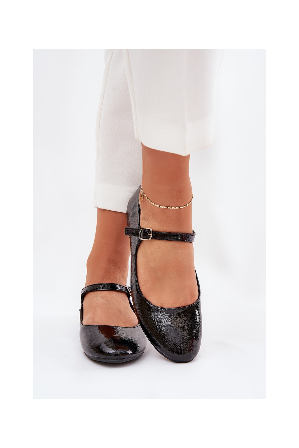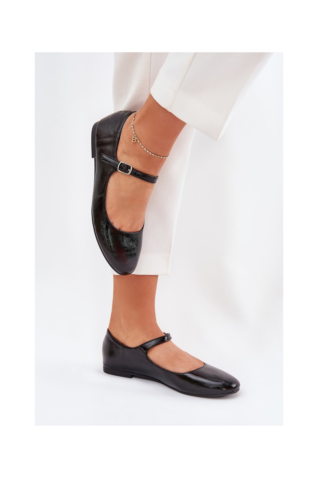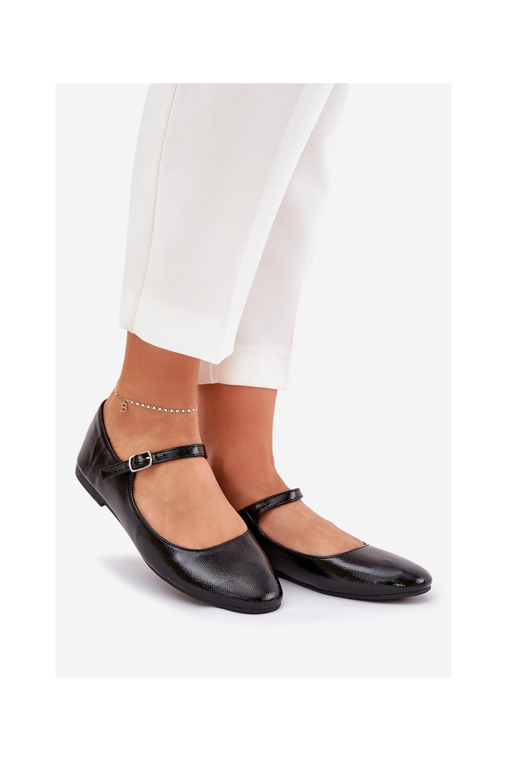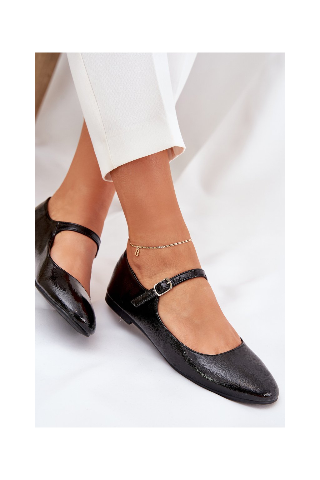 Čierne dámske lakované baletky z eko kože s prackou, 8090-1 BLACK