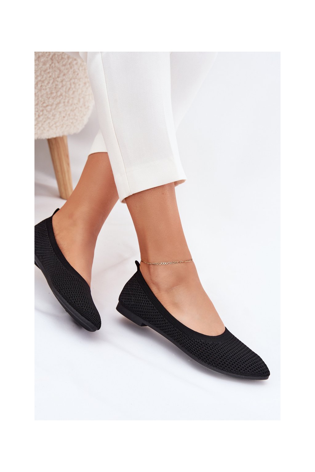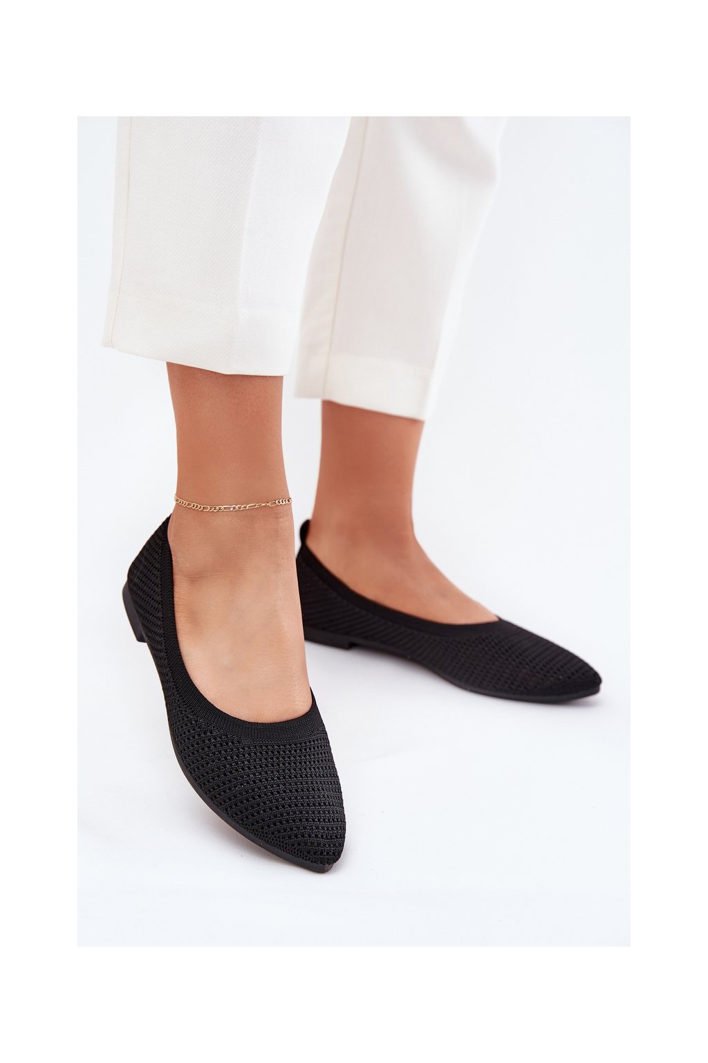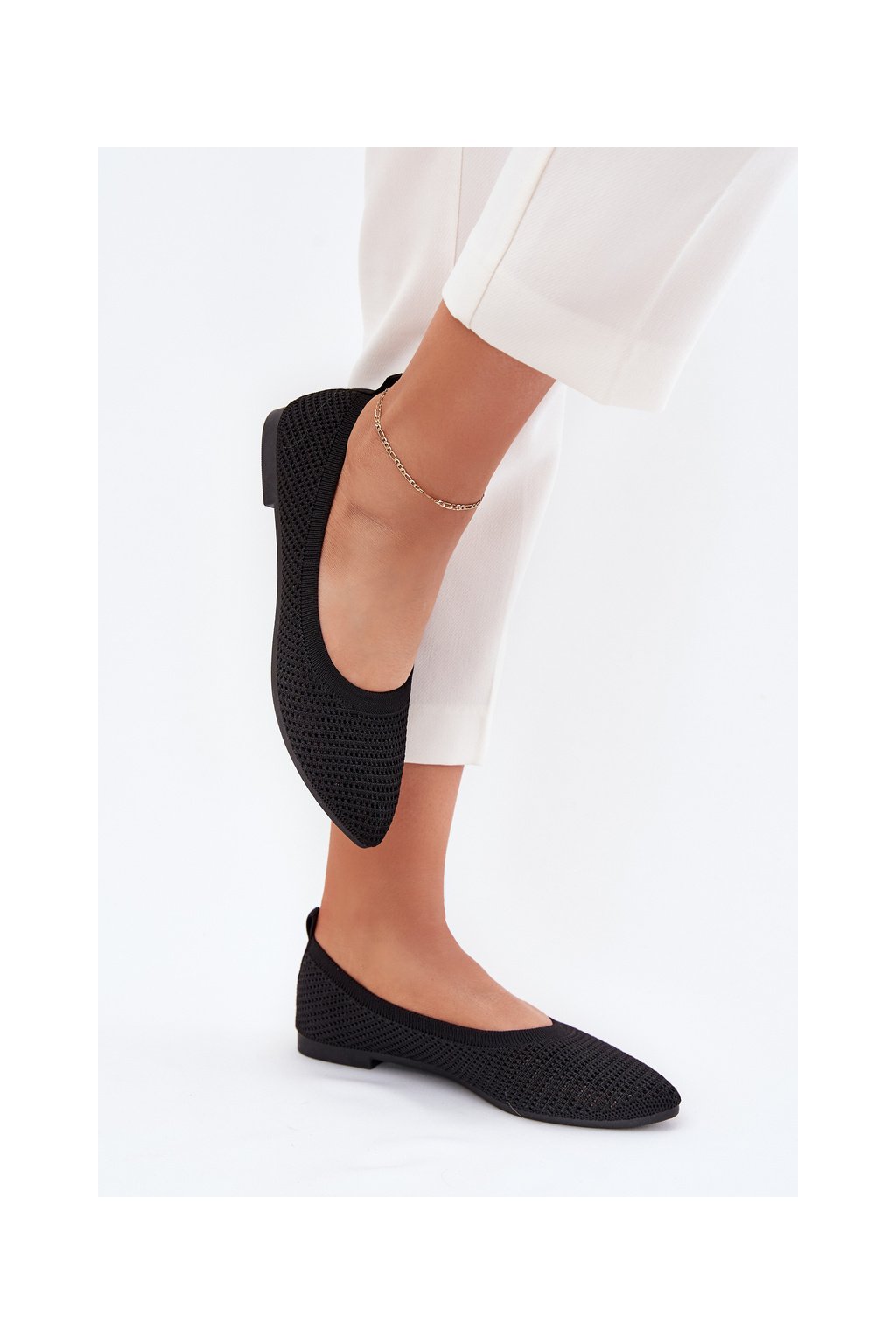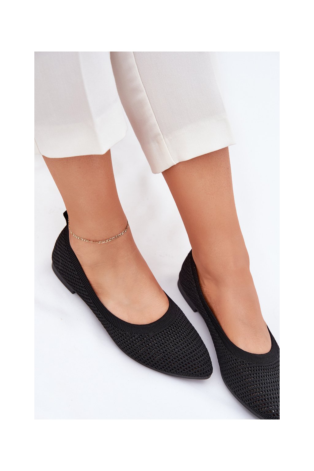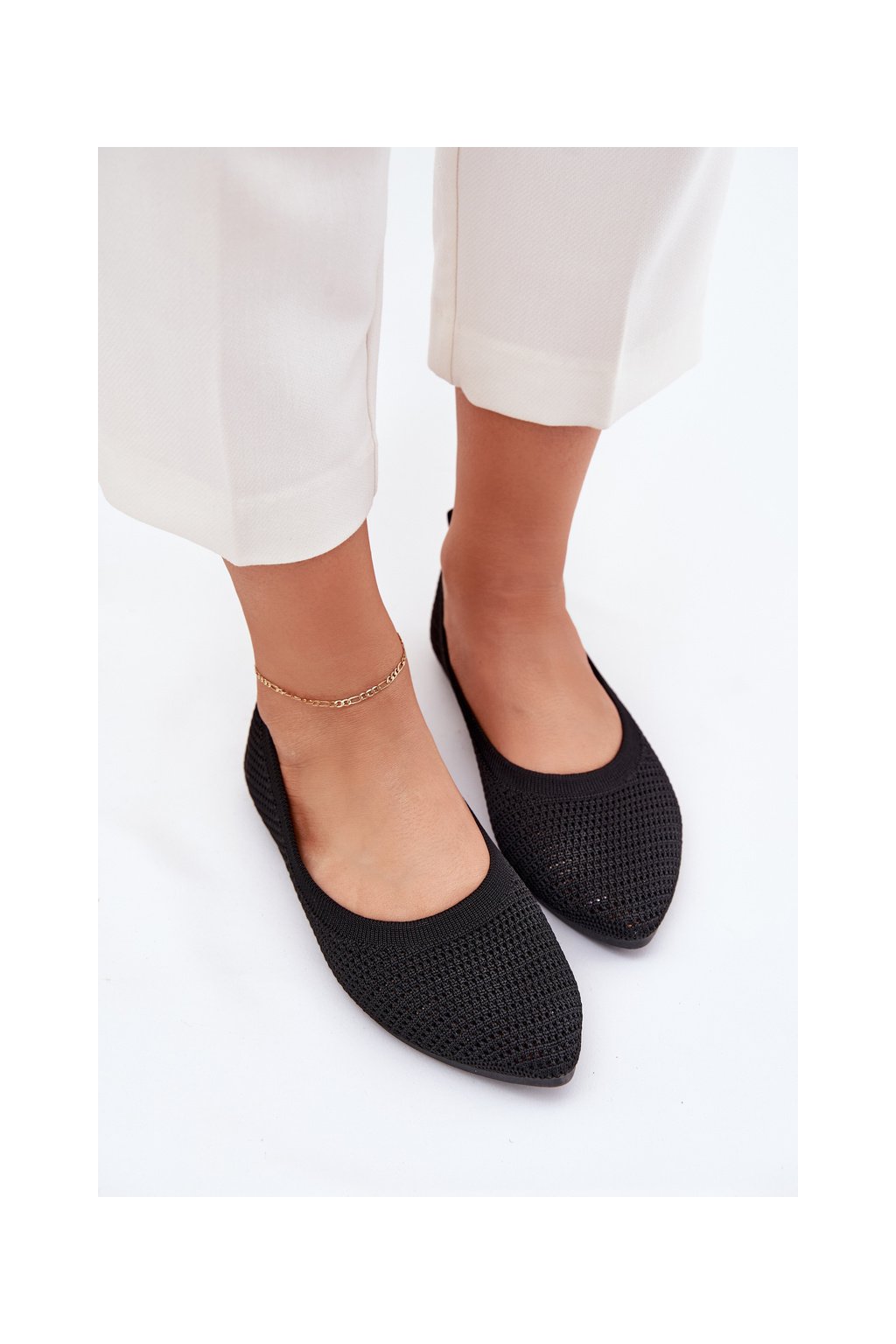 Čierne dámske sieťované baleríny s rovnou podrážkou, kód produktu ZA43P BLACK