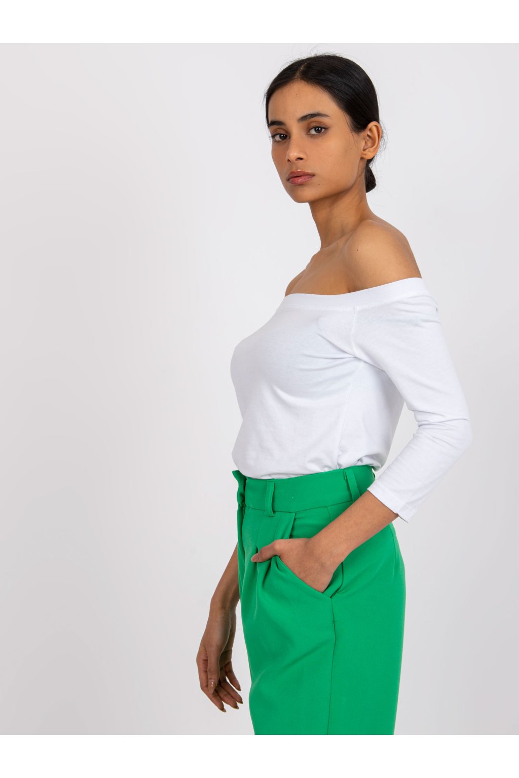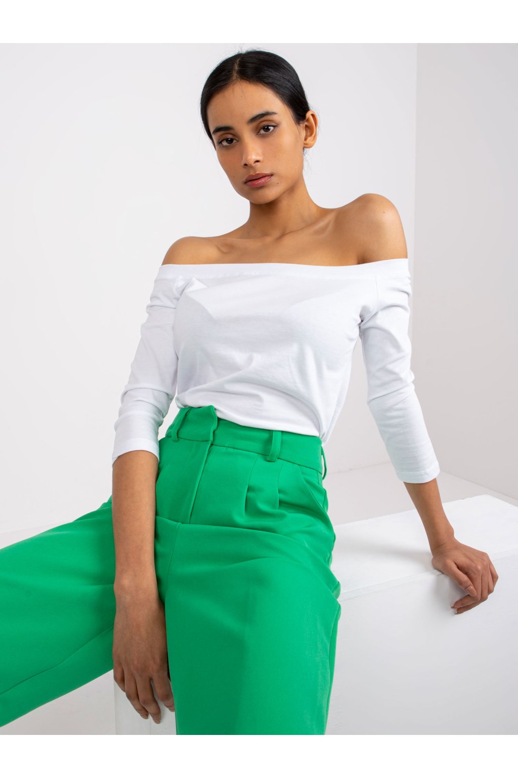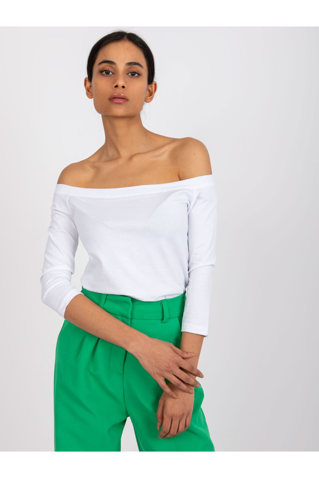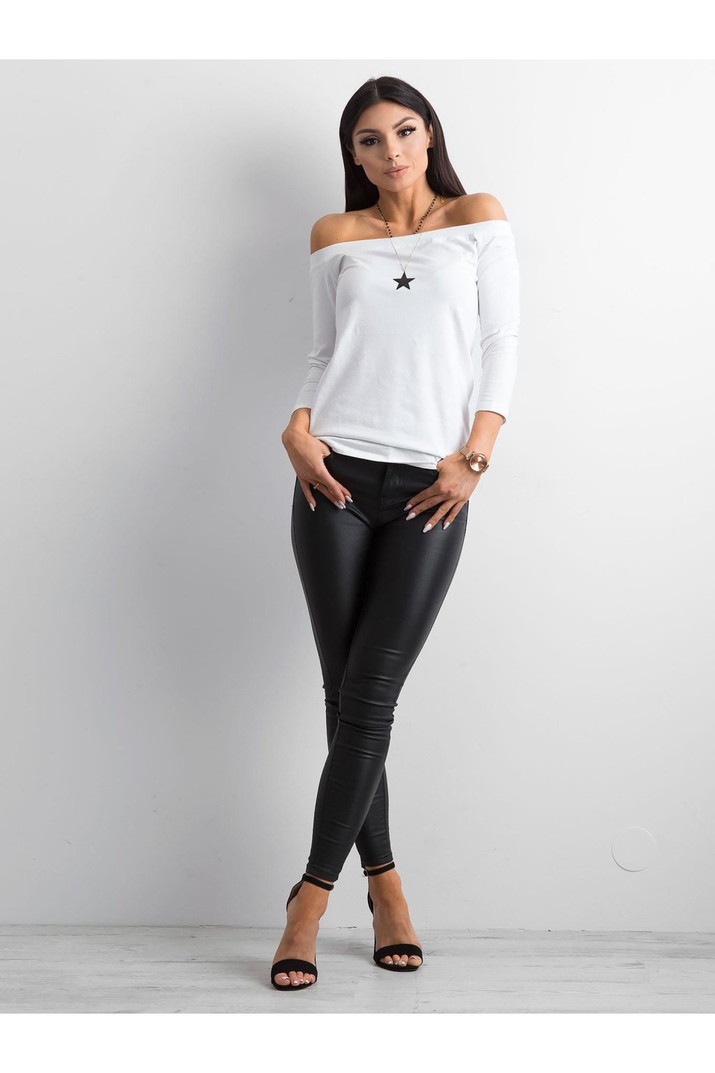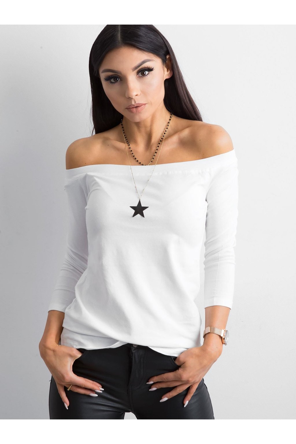 Biela bodkovaná blúzka basic Live . Hladké blúzky sú neoddeliteľnou súčasťou mnohých módnych ženských vzhľadov. Vďaka nim si môžeme ľahko a rýchlo vytvoriť požadovaný vzhľad bez toho, aby sme strácali čas alebo sa zbytočne namáhali. Táto základná blúzka bola navrhnutá pre ženy, ktoré ocenia oblečenie, ktoré zvýrazní prednosti ich tela. Španielsky výstrih krásne odhaľuje ramená a krk, takže pôsobí veľmi zmyselne. Blúzka bude perfektná počas teplejších jarných dní a v letných horúčavách. Je vyrobená z látky príjemnej na dotyk, ktorá sa veľmi dobre nosí a je príjemná na pokožke. Vysoký obsah bavlny zaručuje, že látka je plne priedušná. Základná blúzka má priliehavý strih a módne 3/4 rukávy, vďaka čomu je ideálna pre najnovšie trendy.
