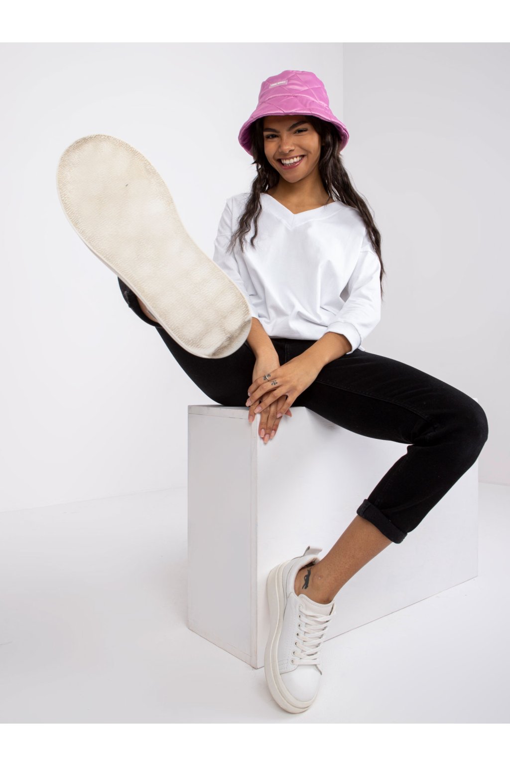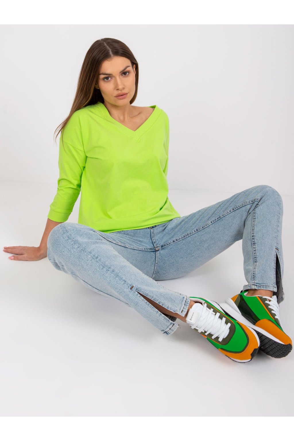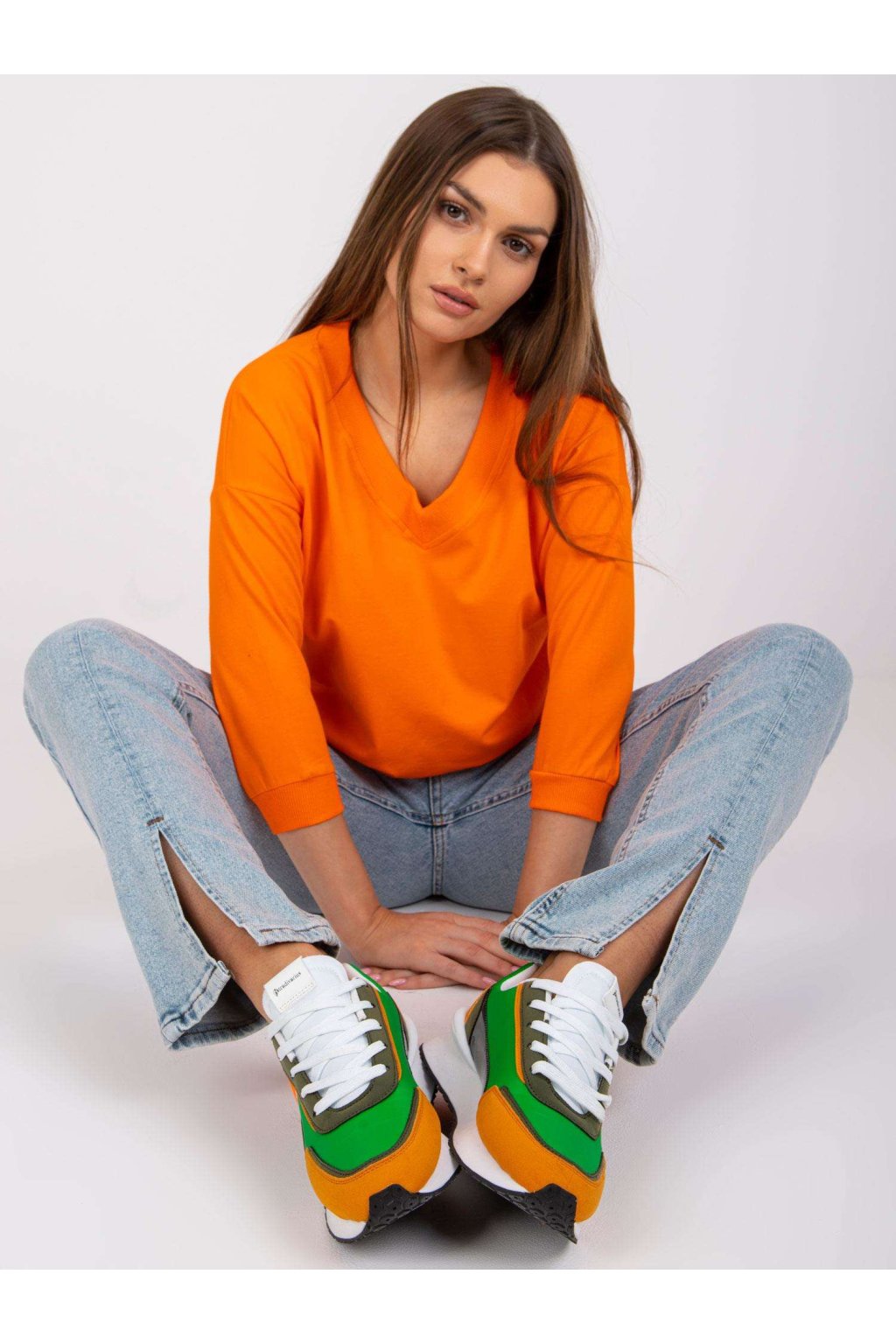 Modelka má na sebe veľkosť S/M. Miery modelky: výška 170 cm, prsia 93 cm, pás 66 cm, boky 93 cm.