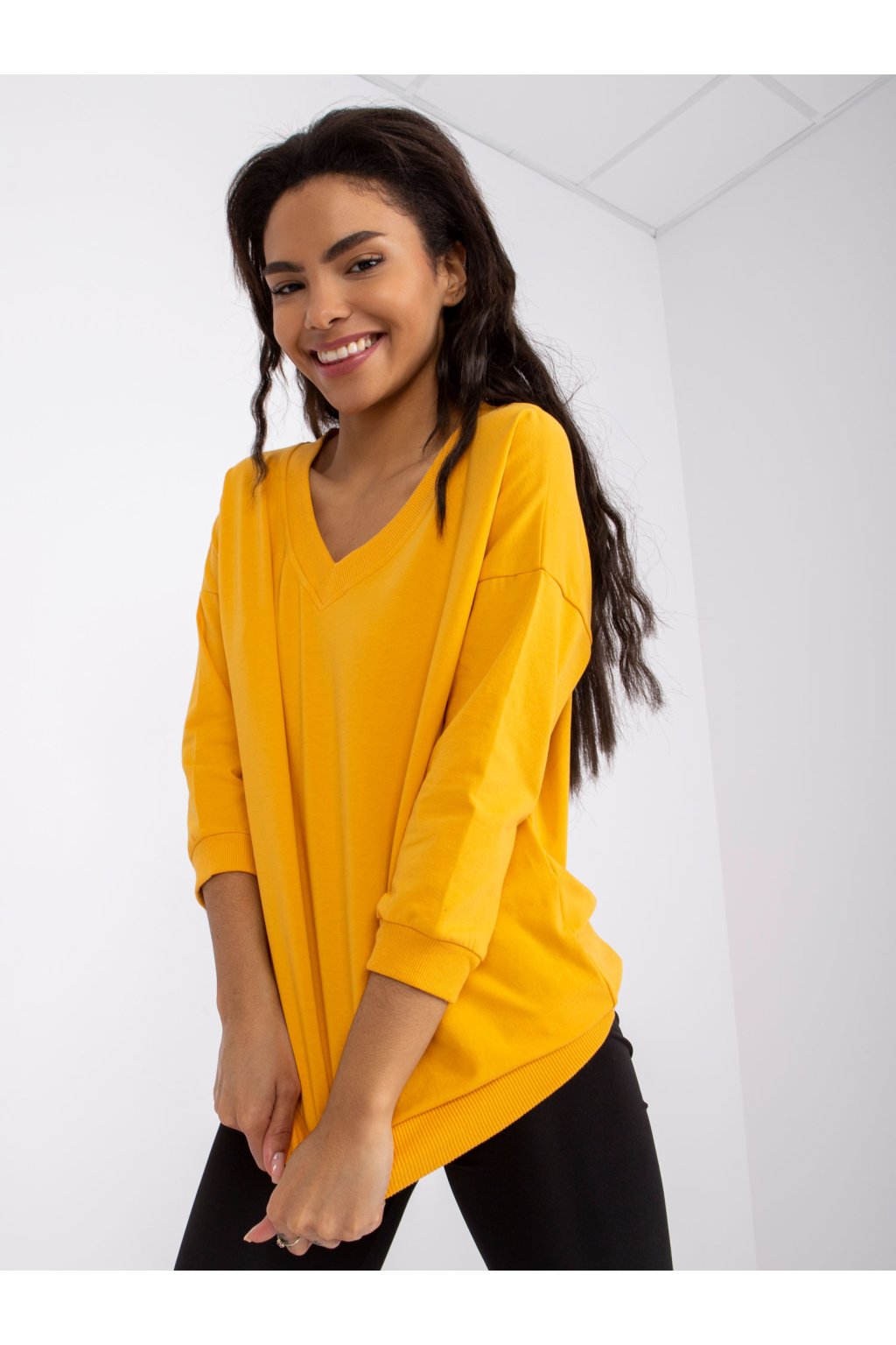 Rozmery blúzky vo veľkosti S/M merané na plocho: šírka v podpazuší - 57 cm, celková dĺžka - 62 cm, dĺžka rukáva - 42 cm.