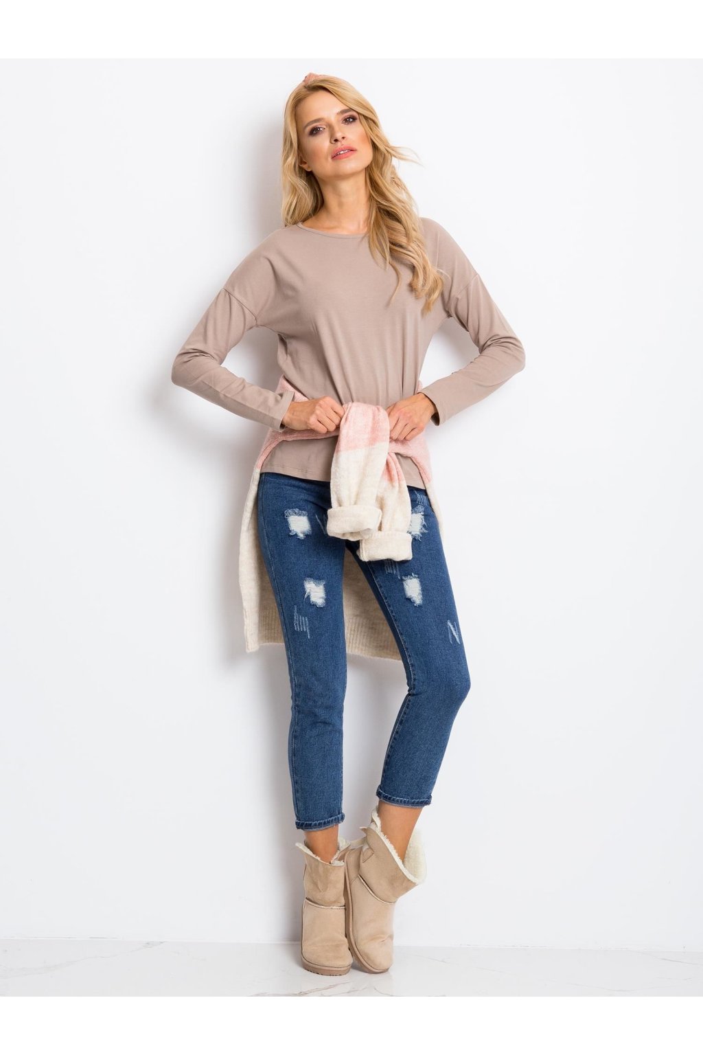 Dámska blúzka s dlhým rukávom tmavo-béžová RV-BZ-5121.23P