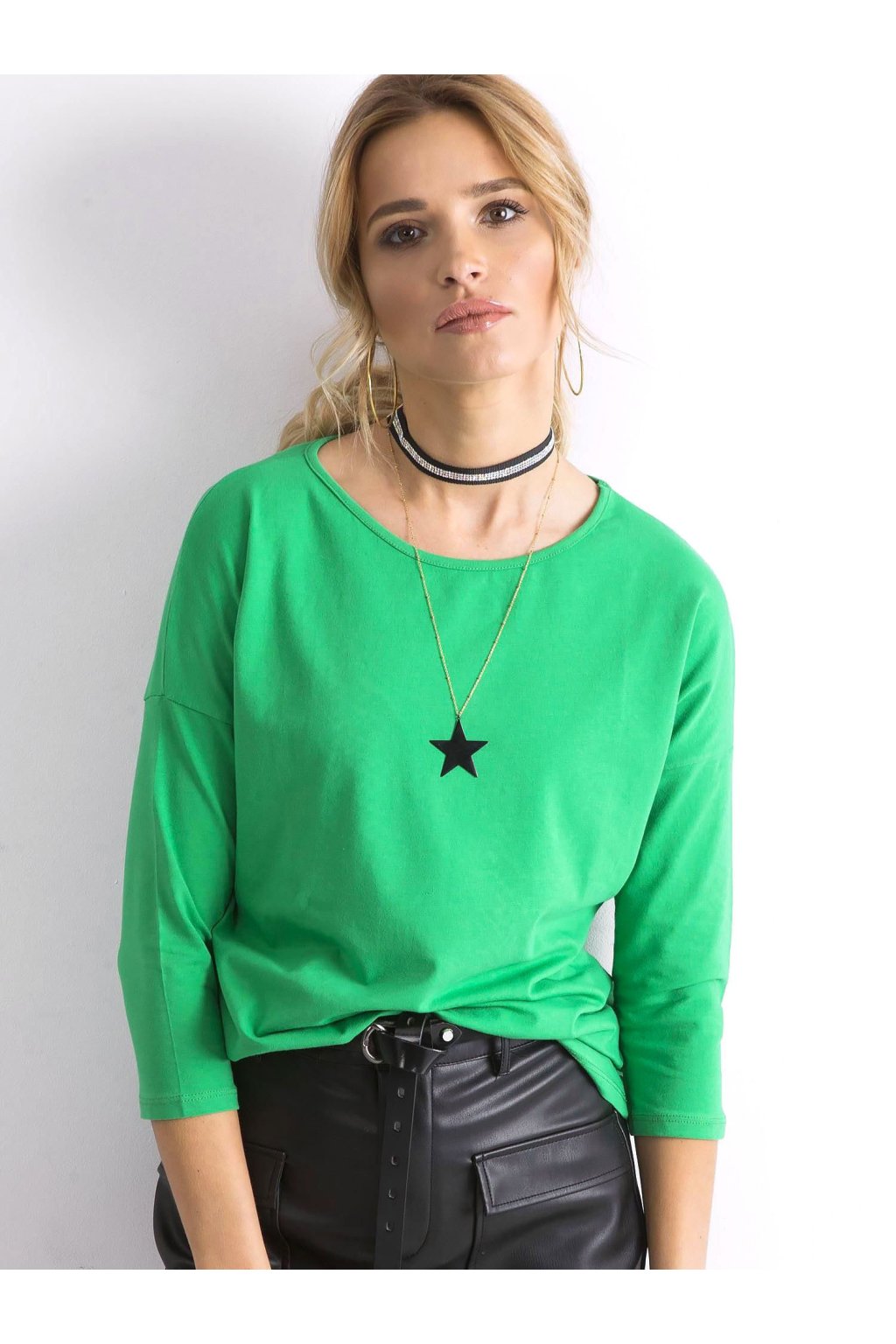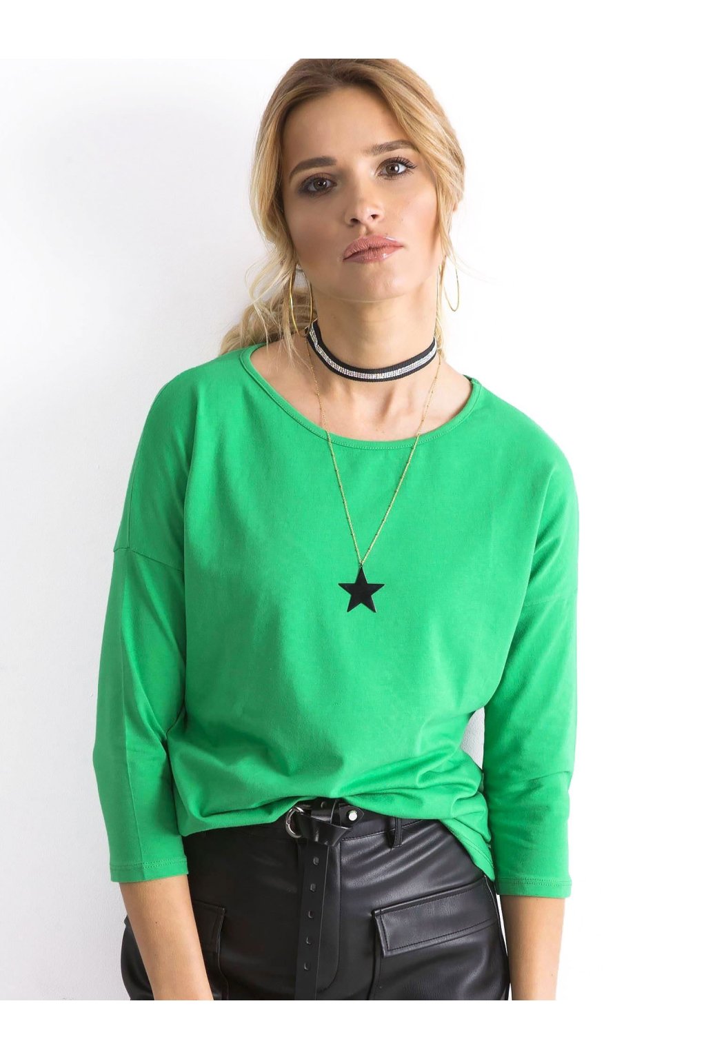 Zielona bluzka April. Bawełniana bluzka damska z rękawem 3/4 to prawdziwy must have w garderobie każdej kobiety lubiącej ponadczasowe i wygodne ubrania. Takie modele pozwalają tworzyć mnóstwo codziennych stylizacji na sportowy lub bardziej elegancki sposób. Pasuje do nich prawie każdy inny ciuch, a charakter całego stroju można regulować przy pomocy odpowiednich dodatków i makijażu. Ta bluzka damska z bawełny ma kobiecy dekolt, modne rękawy 3/4 i luźniejszy fason, który pięknie układa się na sylwetce i jest wygodny podczas noszenia. Bluzka wykonana jest z wysokiej jakości materiałów o dużej zawartości czystej bawełny. Dzięki temu jest jednocześnie oddychająca i przyjemna w dotyku, dlatego zapewnia tak dużo komfortu noszenia na co dzień. Taka bluzka z rękawem 3/4 świetnie wygląda w połączeniu z naszymi spodniami jeansowymi lub spódnicami.