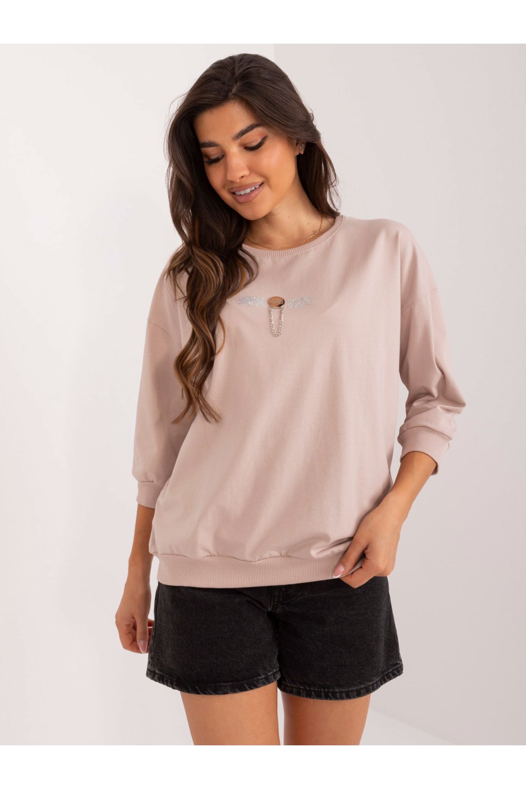 Dámska blúzka over size béžová RV-BZ-9582.03X