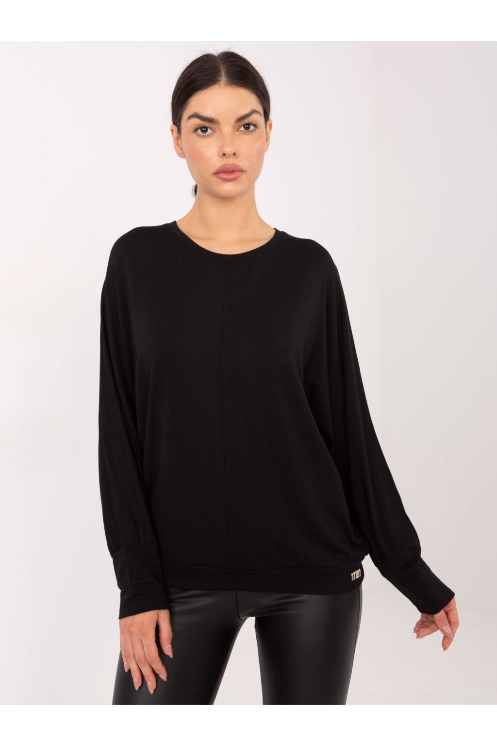 Wymiary bluzki w rozmiarze one size mierzone na płasko: szerokość pod pachami - 70 cm, długość całkowita - 66 cm, szerokość w biodrach - 48 cm, długość rękawa - 69 cm.