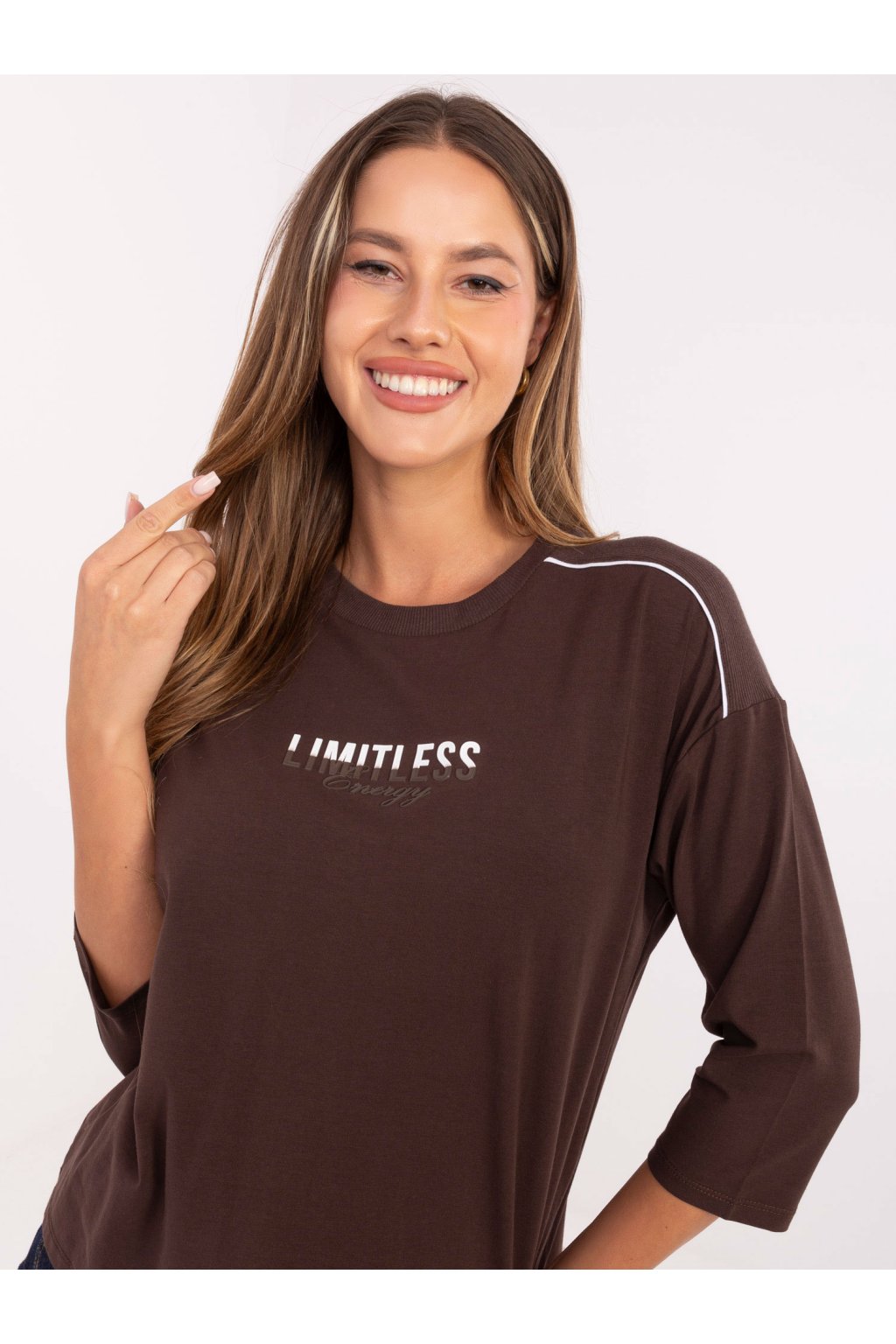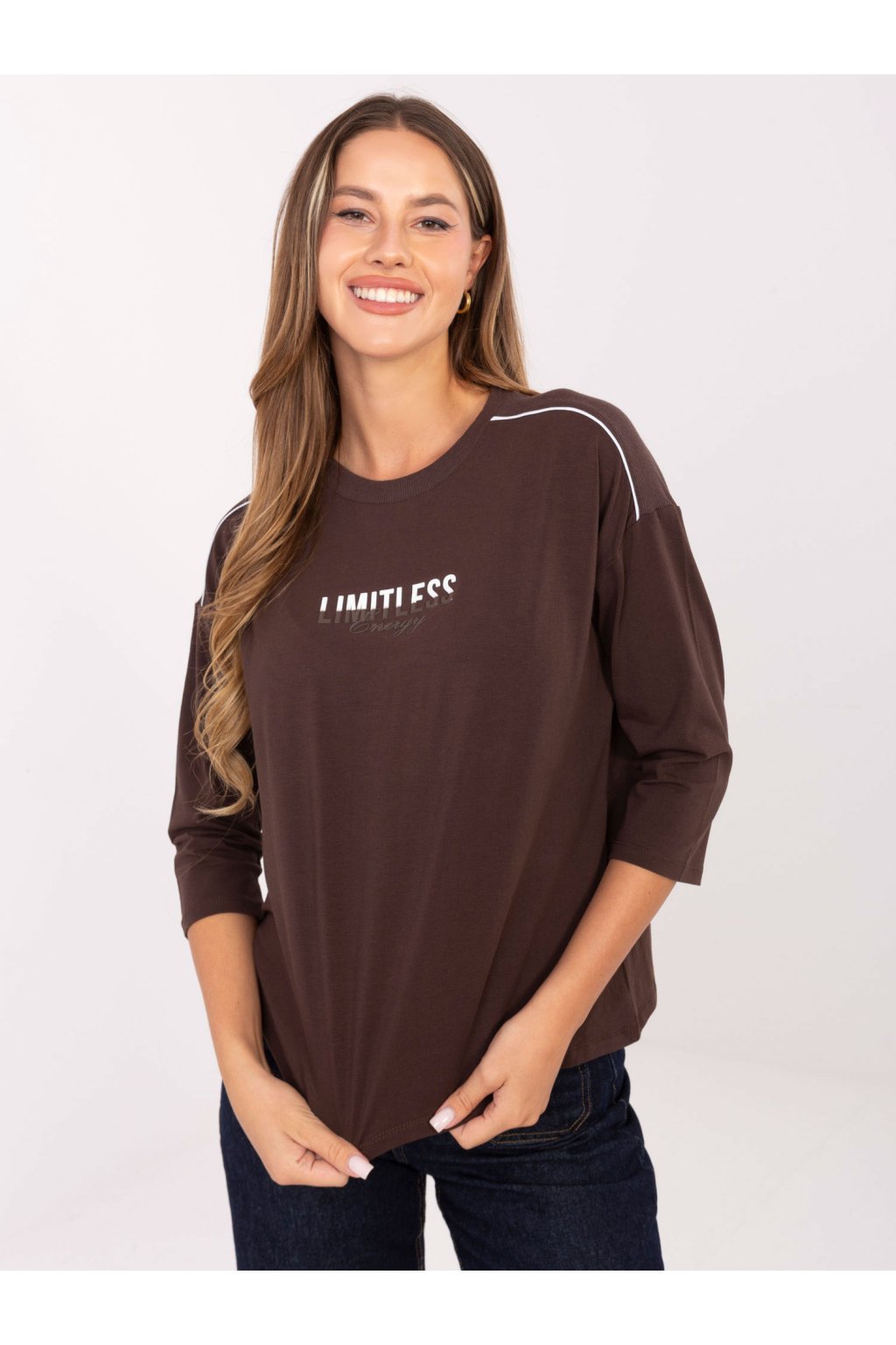 Dámska blúzka over size tmavo-hnedá RV-BZ-A826.89