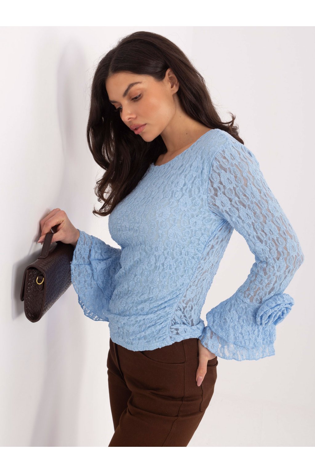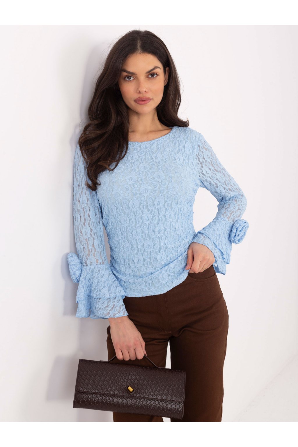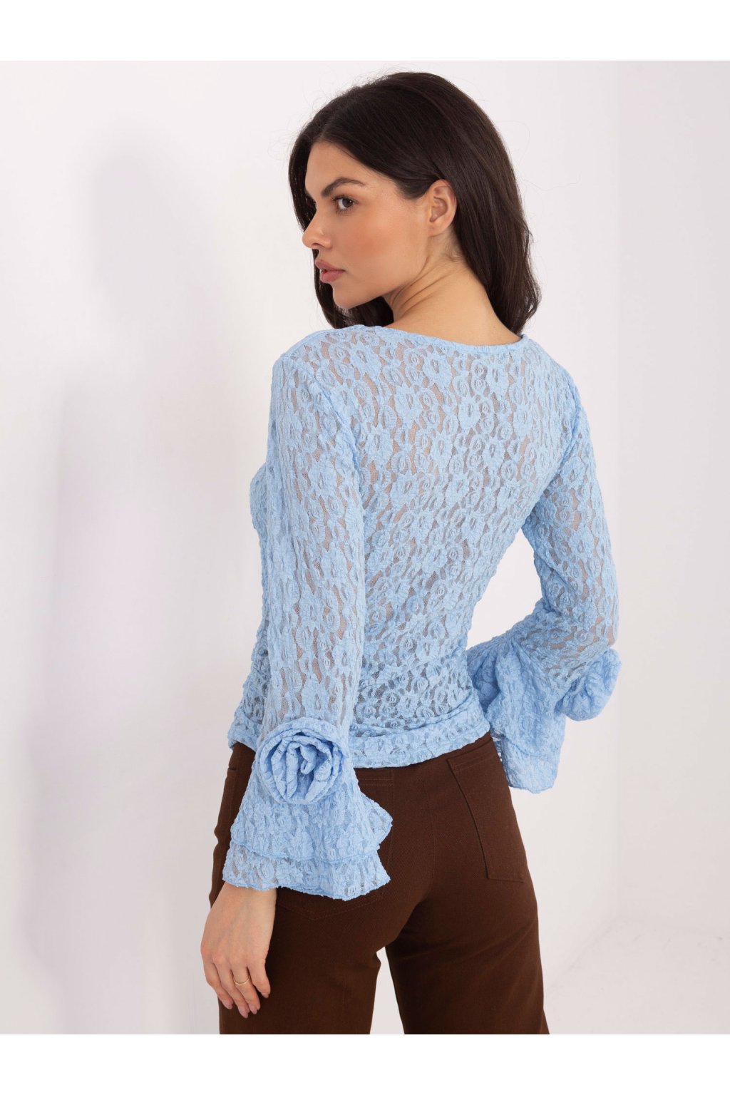 Wymiary bluzki w rozmiarze one size mierzone na płasko: szerokość pod pachami - 70 cm, długość całkowita - 66 cm, szerokość w biodrach - 48 cm, długość rękawa - 69 cm.
