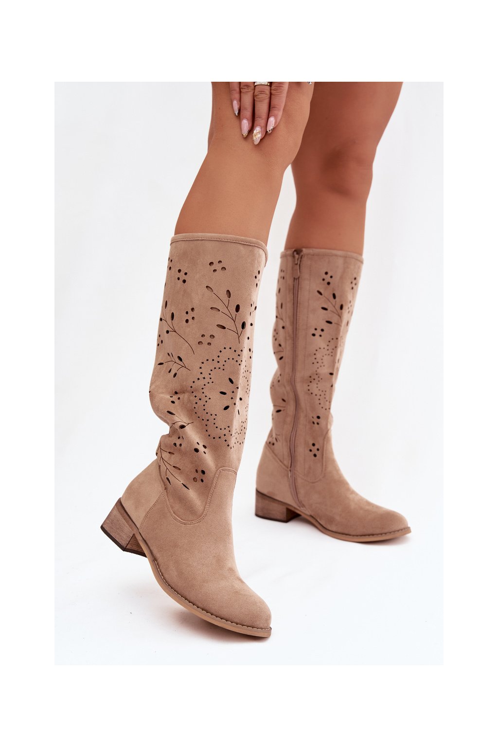 Ažurové Dámske čižmy na podpätku khaki helinna / NS596P KHAKI