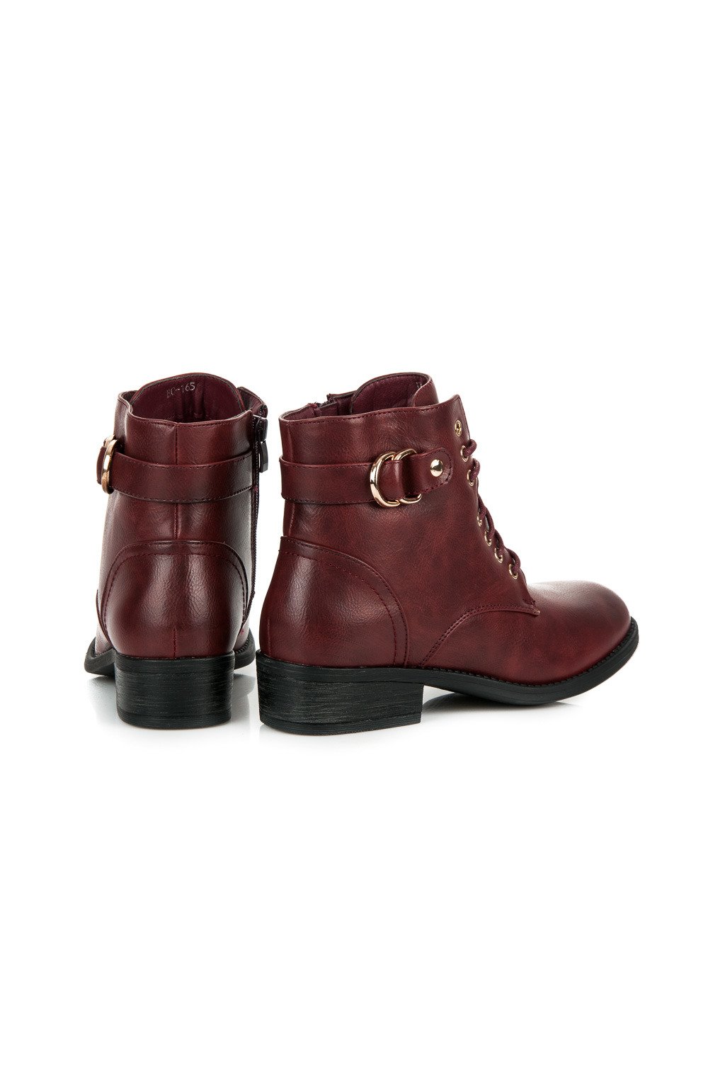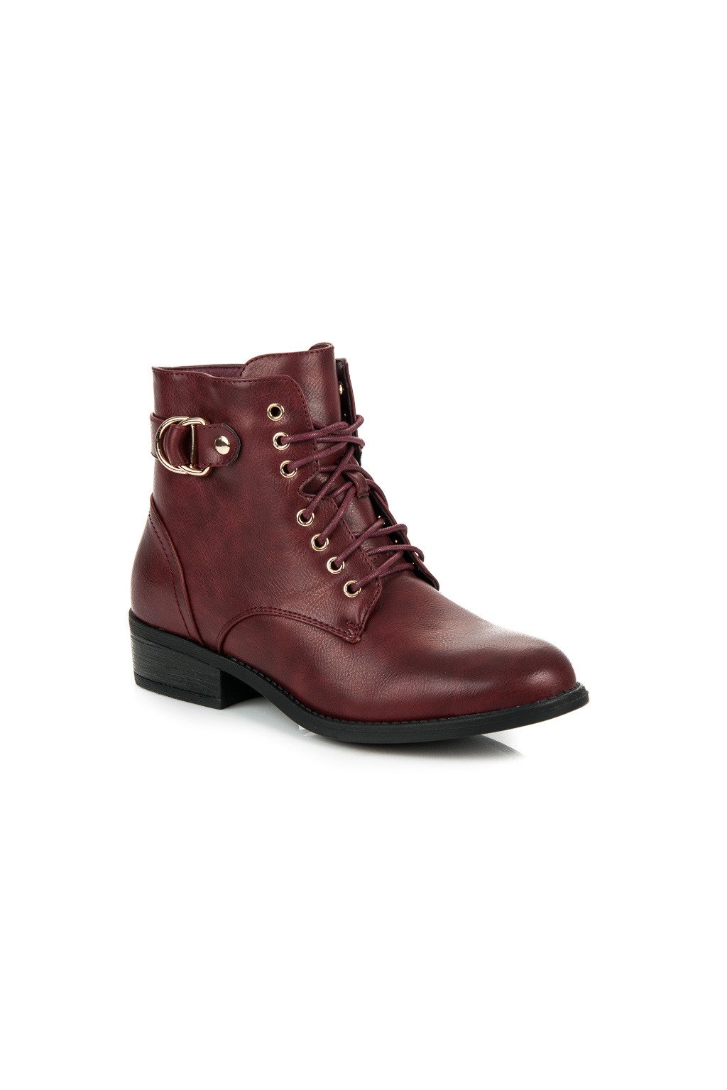 Červené dámske členkové čižmy z eko kože s kožušinkou na jeseň, kód produktu BO-165WI