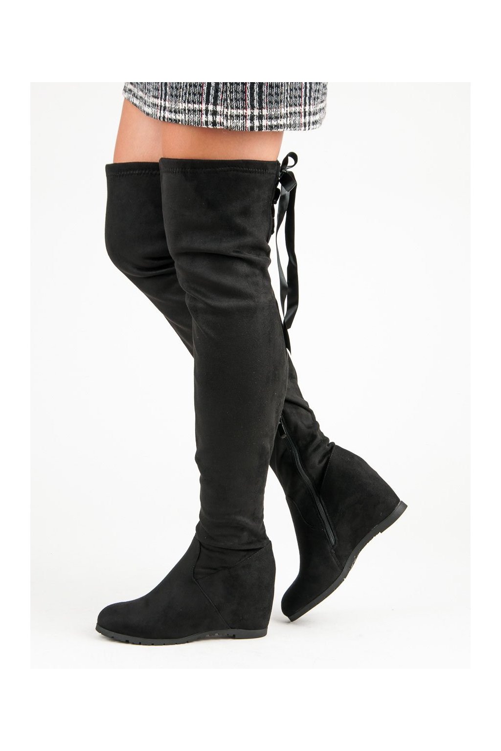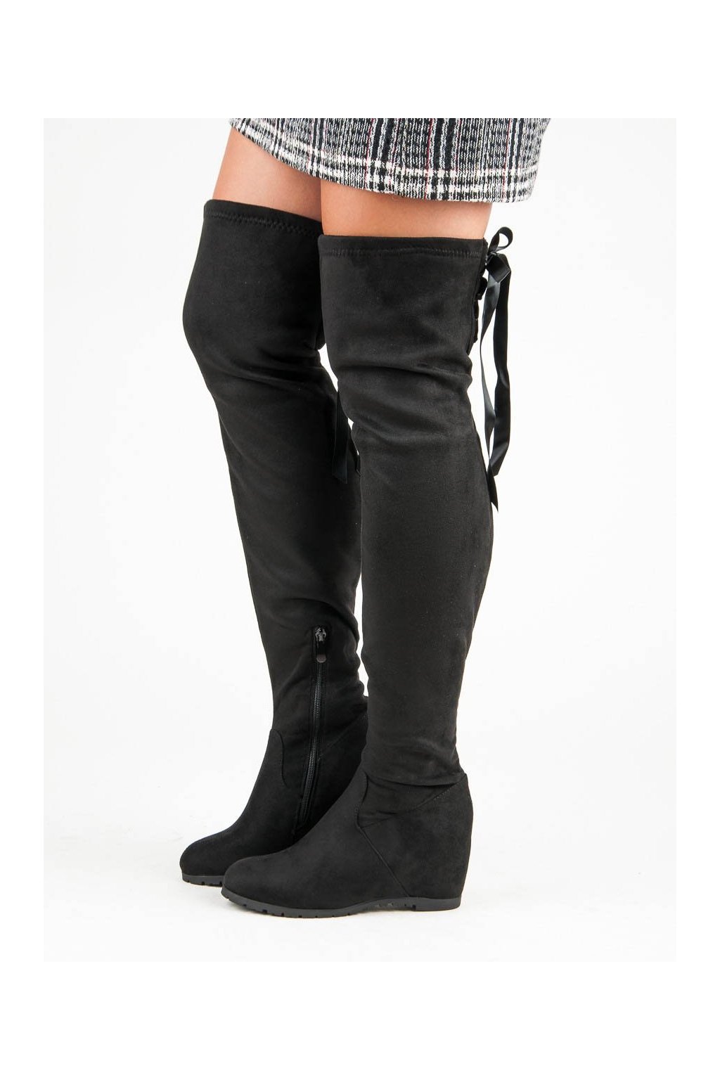 Čierne dámske semišové mušketierky s platformou a skrytou pätou, elegantné na večer a párty, kód produktu NJSK 168-139B