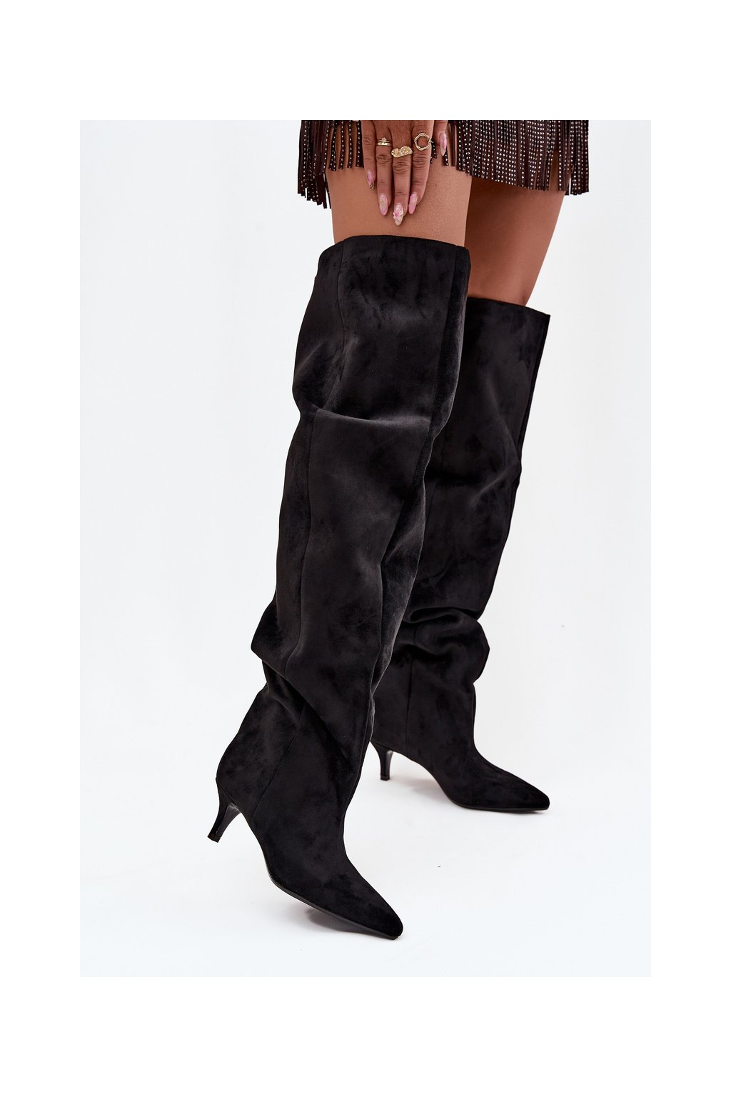 Čierne dámske semišové čižmy na ihlovom podpätku 3307 Black