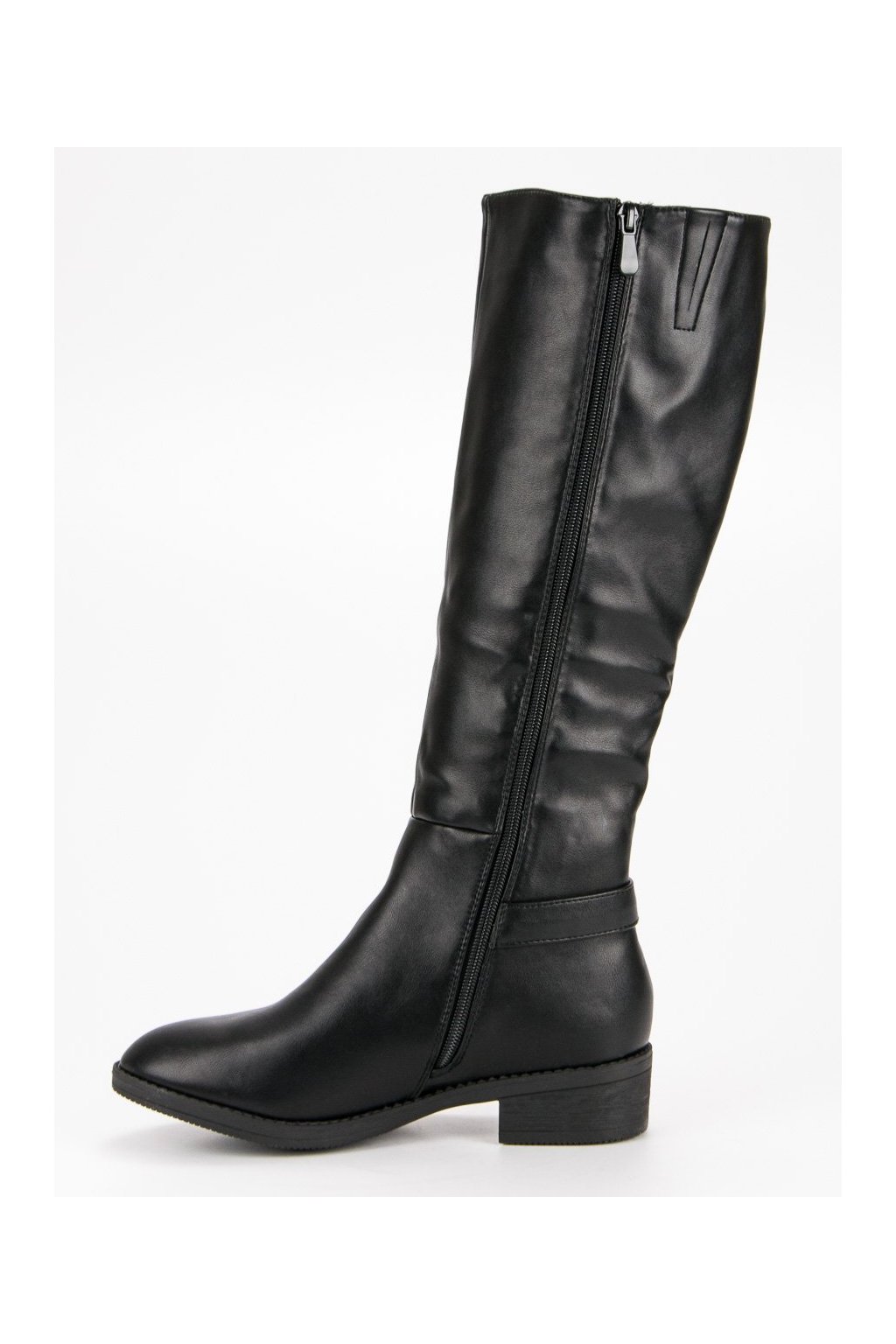 Čierne dámske klasické členkové čižmy pod kolená s kožušinkou a ozdobnou sponou, kód produktu 019B