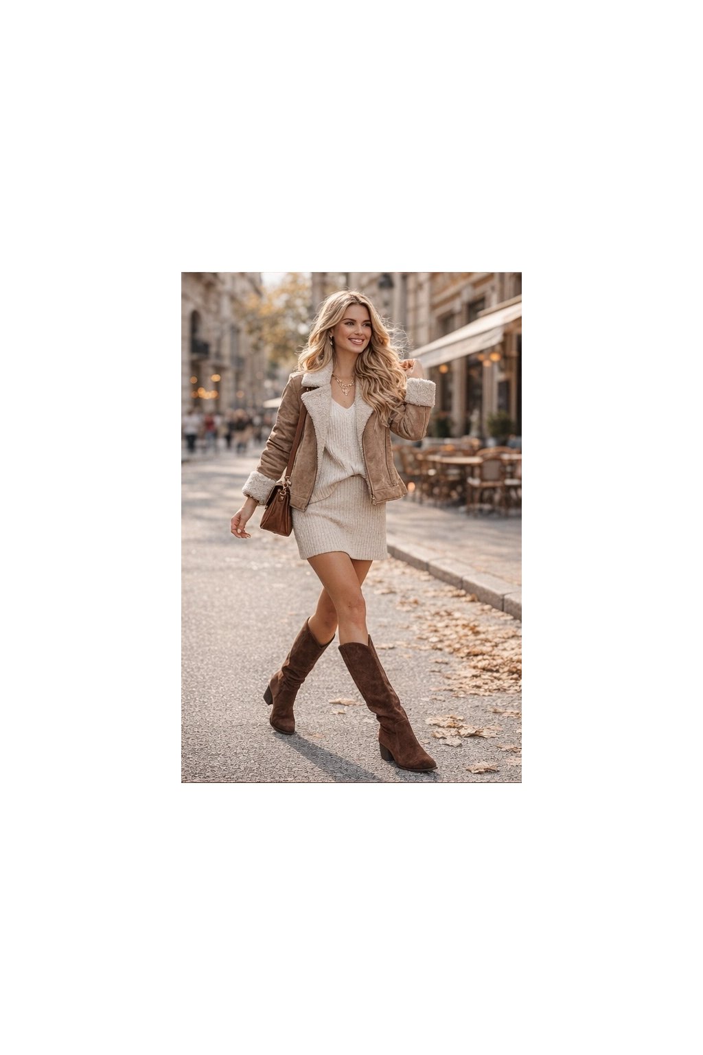 Dámské kožené kozačky vyrobené z ekologického semiše jsou stylovým modelem inspirovaným západním akcentem. Postavené na charakteristickém, zkráceném podpatku, zvýrazňují siluetu a dodávají celému vzhledu jedinečný charakter. Špičaté nosy jim dodávají eleganci a izolace z pěny pokryté měkkým materiálem zajišťuje pohodlí a teplo v chladnějších dnech. Model je s jednoduchým nazouváním, přičemž dodatečný zip usnadňuje obouvání a přizpůsobení. Ideální pro podzimní a zimní stylizace, jak pro každodenní, tak i pro módní outfity. Při výběru velikosti se řiďte níže uvedenou tabulkou velikostí. Při výběru velikosti se řiďte tabulkou velikostí.