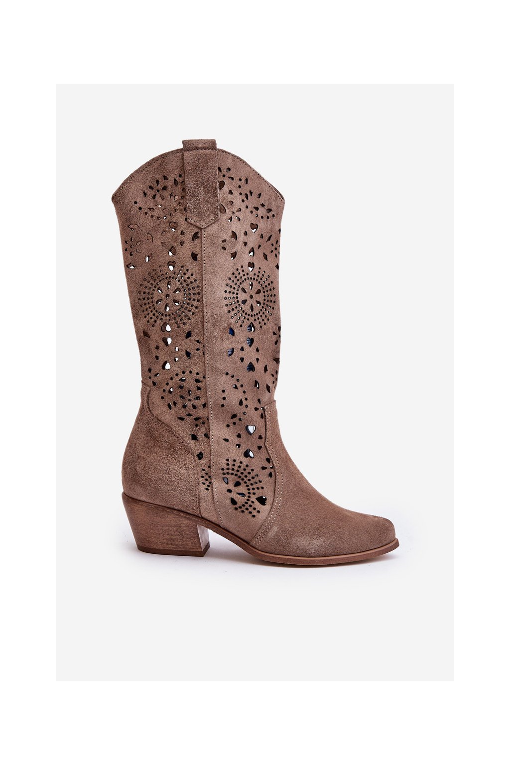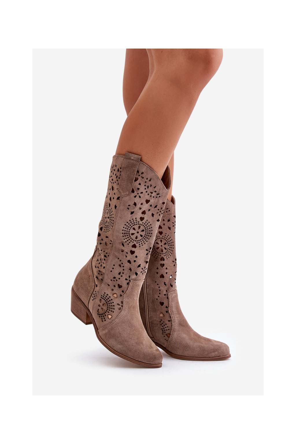 Zazoo 3396 Semišové Vyšívané Polobotky Na Půl Lýtek Hnědé