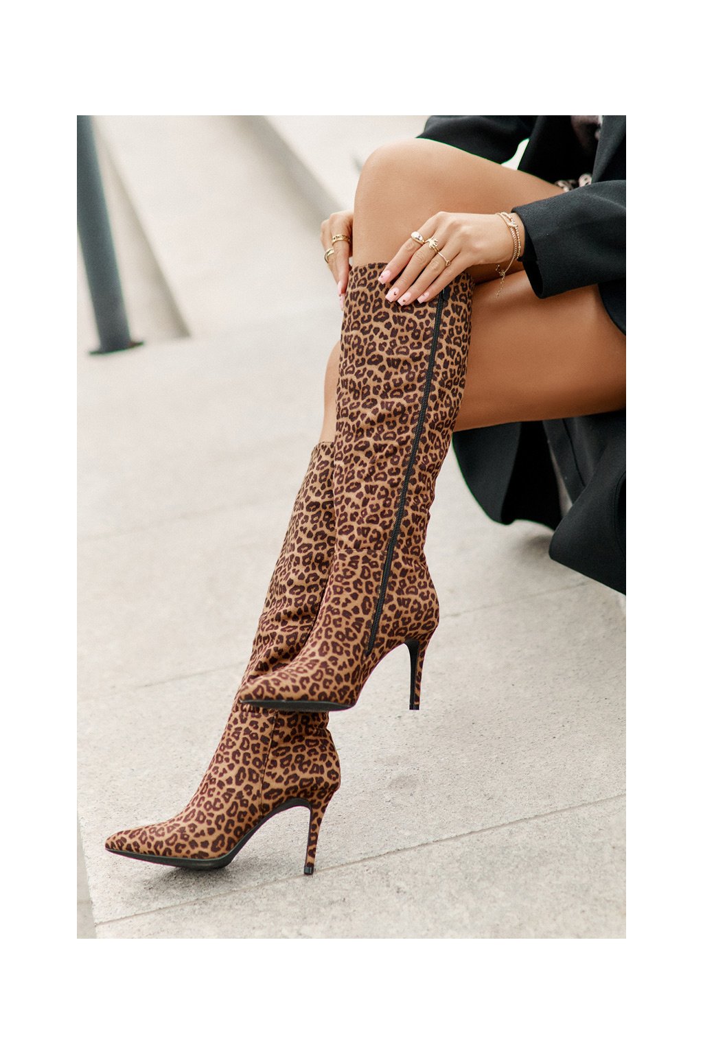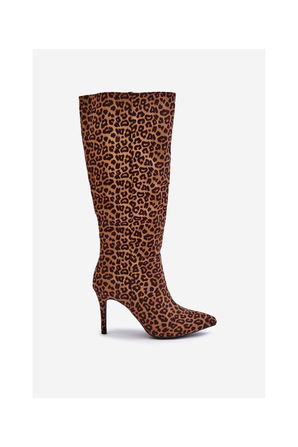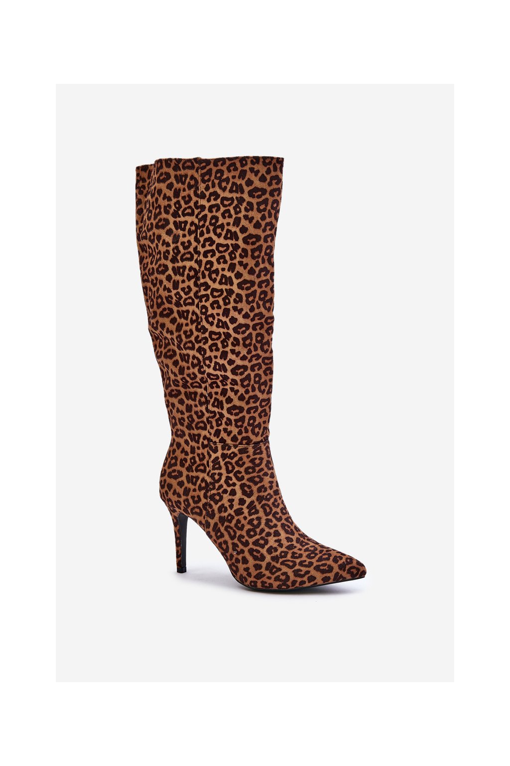 Čierne dámske členkové čižmy z eko semišu s ihlovým podpätkom a zipsom, vzor leopardí, kód produktu LQ-125 LEOPARD
