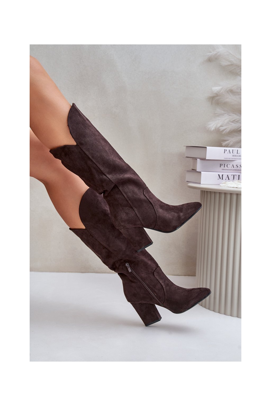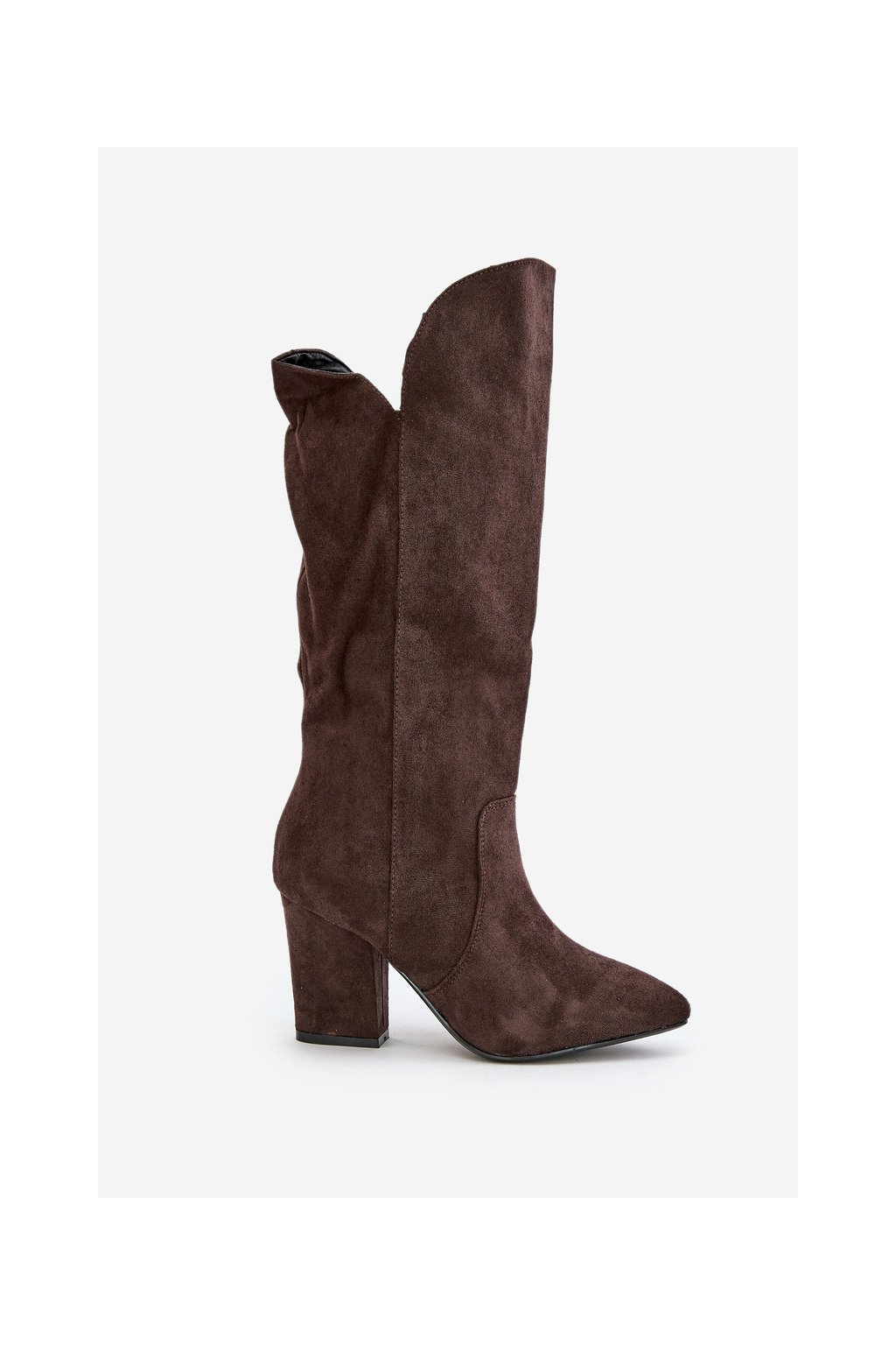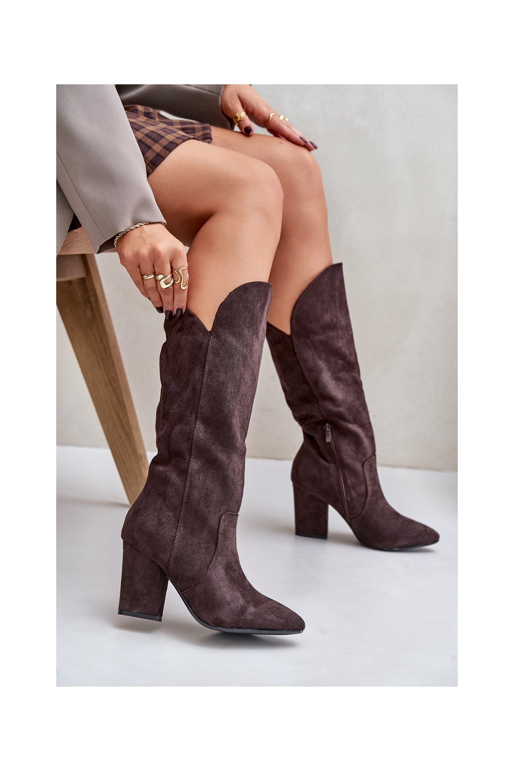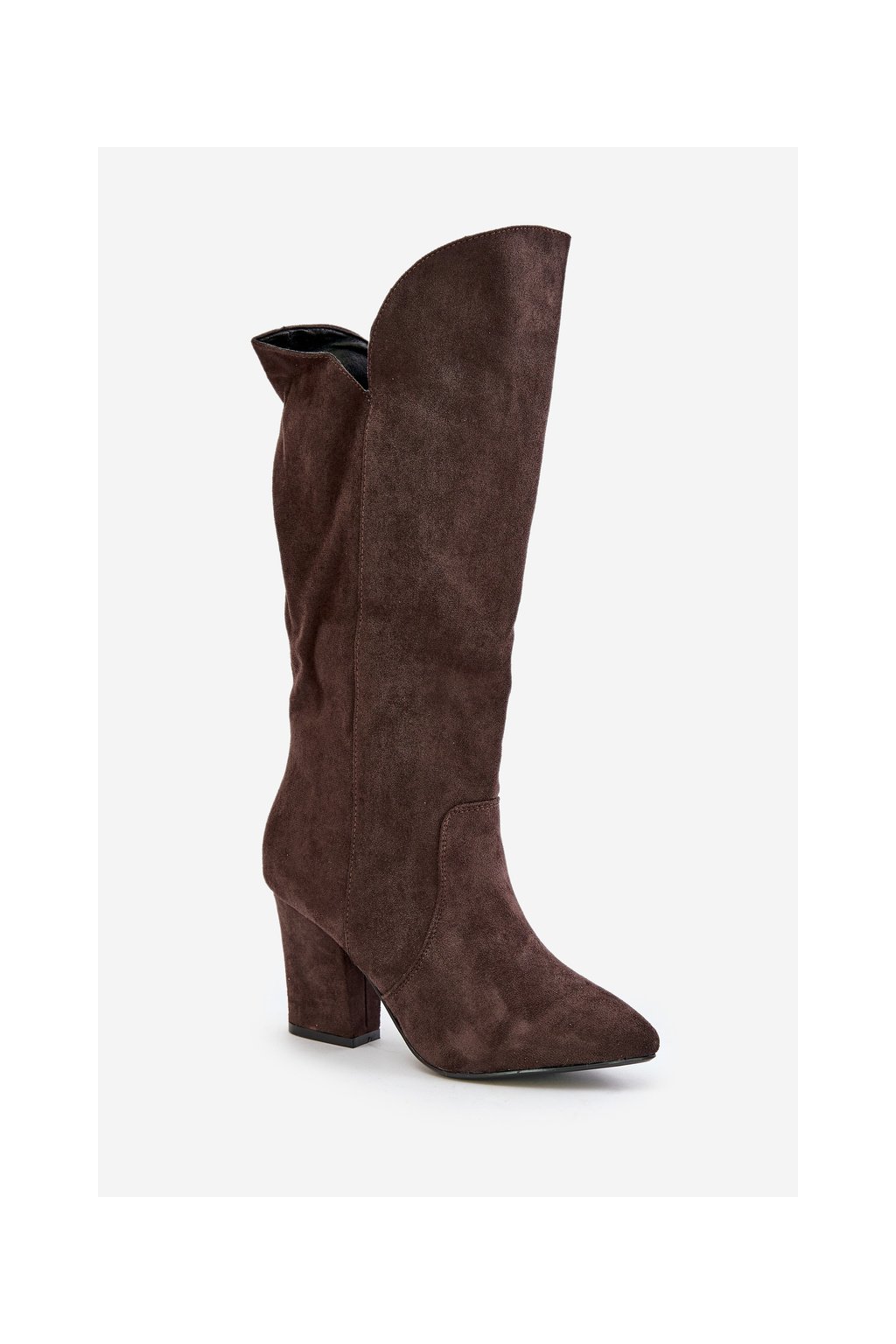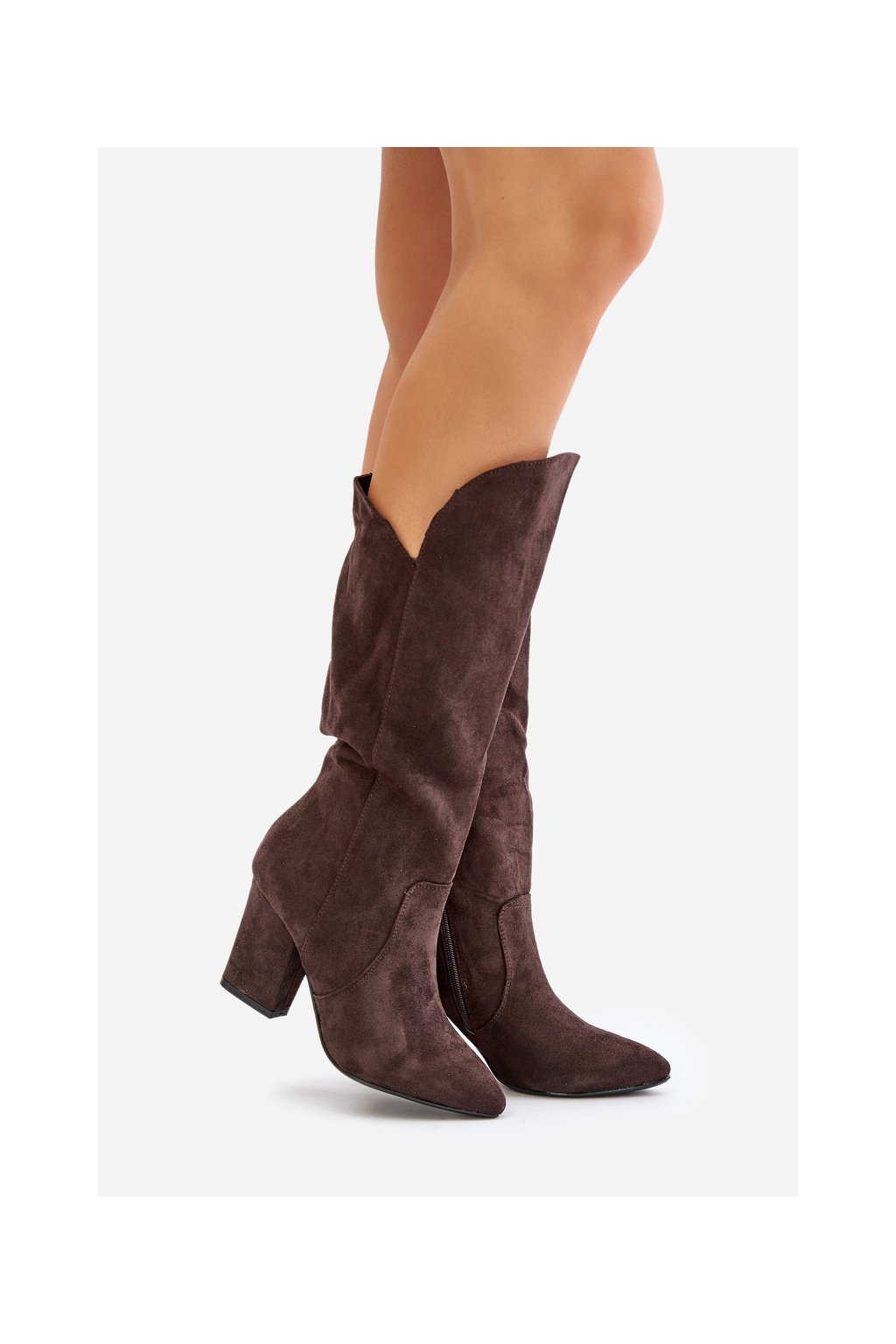 Hnedé dámske členkové čižmy z eko semišu na stĺpovom podpätku, kód produktu MP401-1 CAMOSCIO/TAUPE