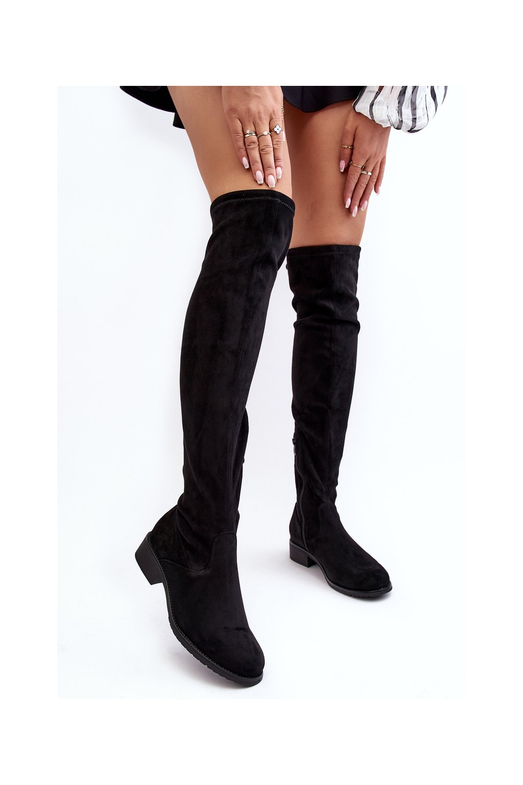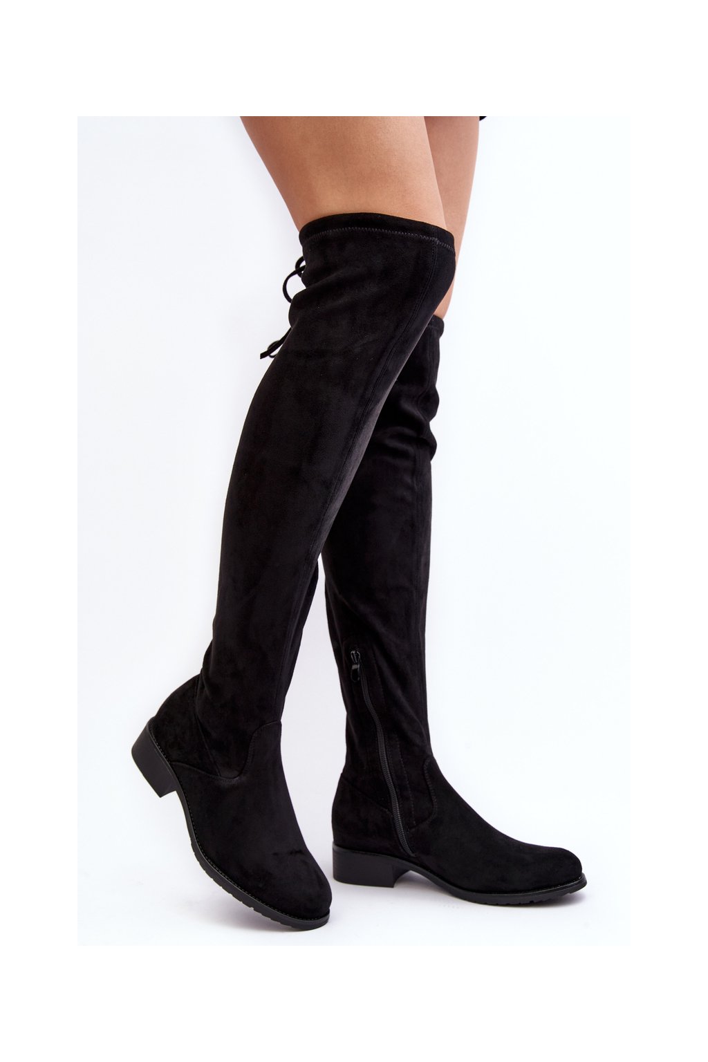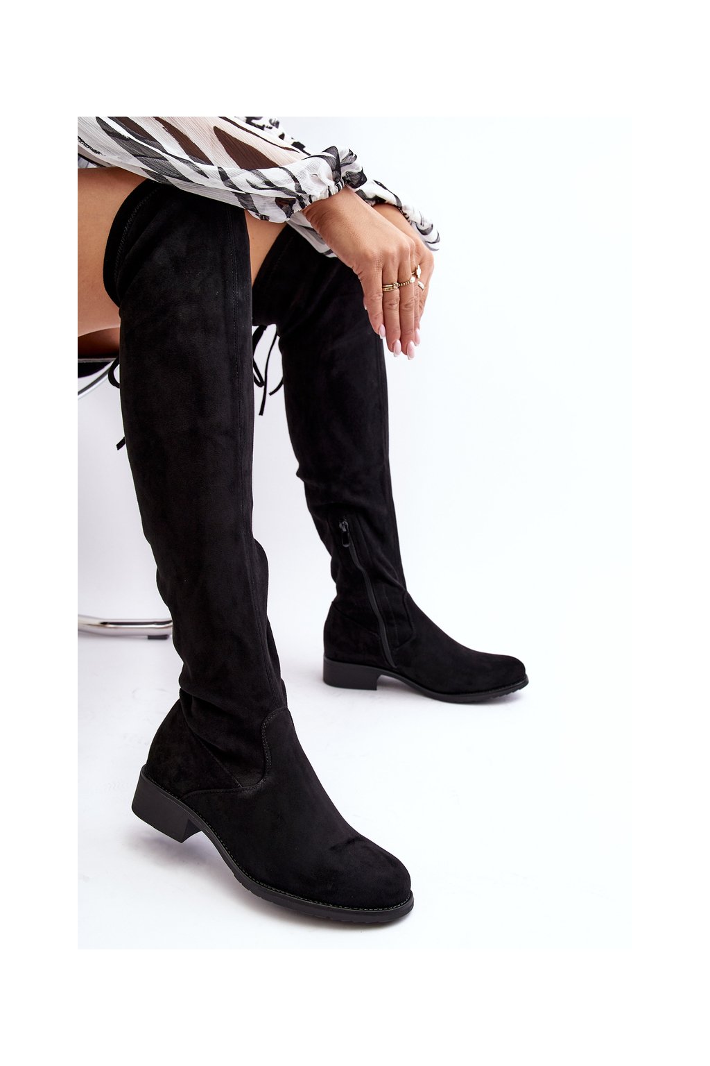 Čierne dámske semišové čižmy nad koleno na plochej podrážke YY6756 BLACK