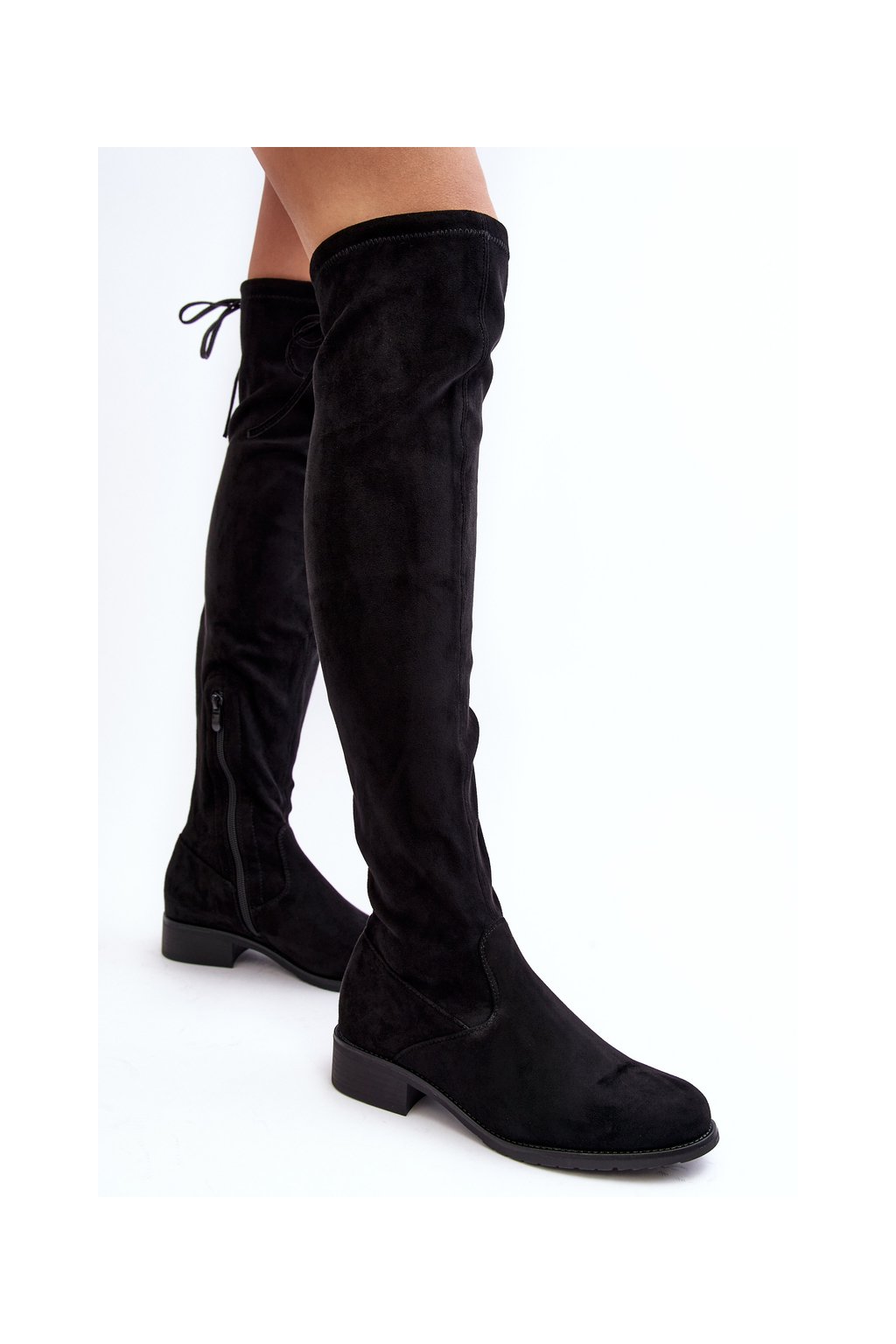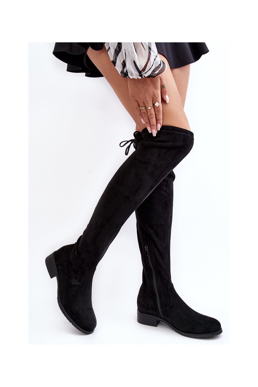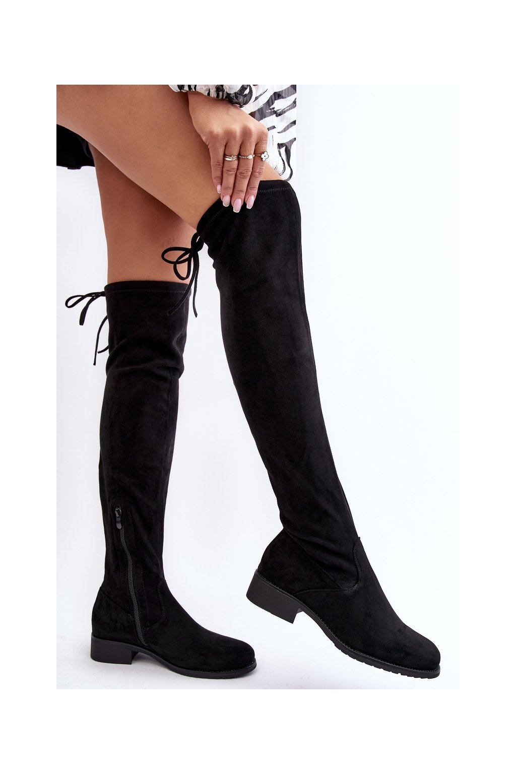 Čierne dámske semišové čižmy nad koleno na plochej podrážke YY6756 BLACK