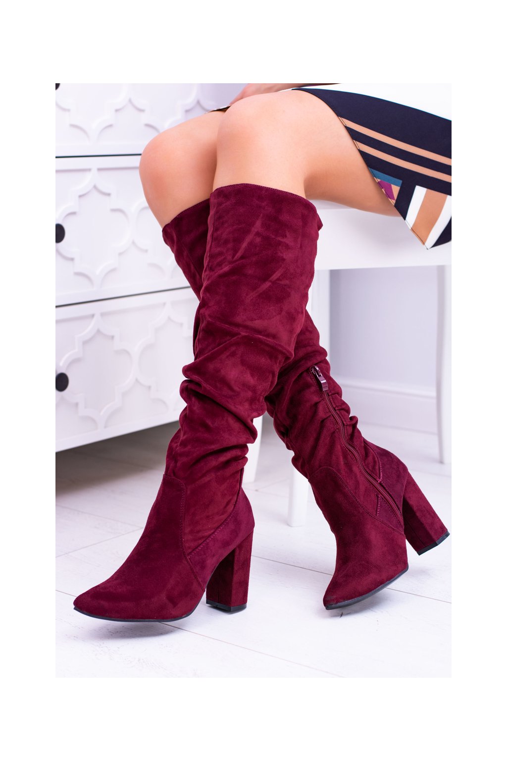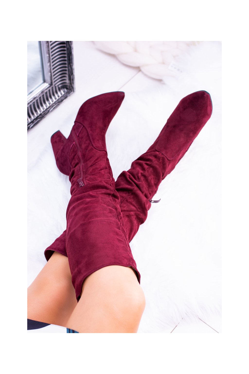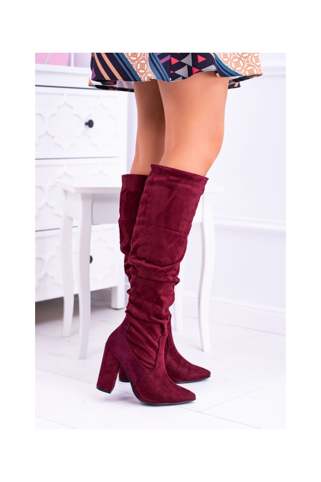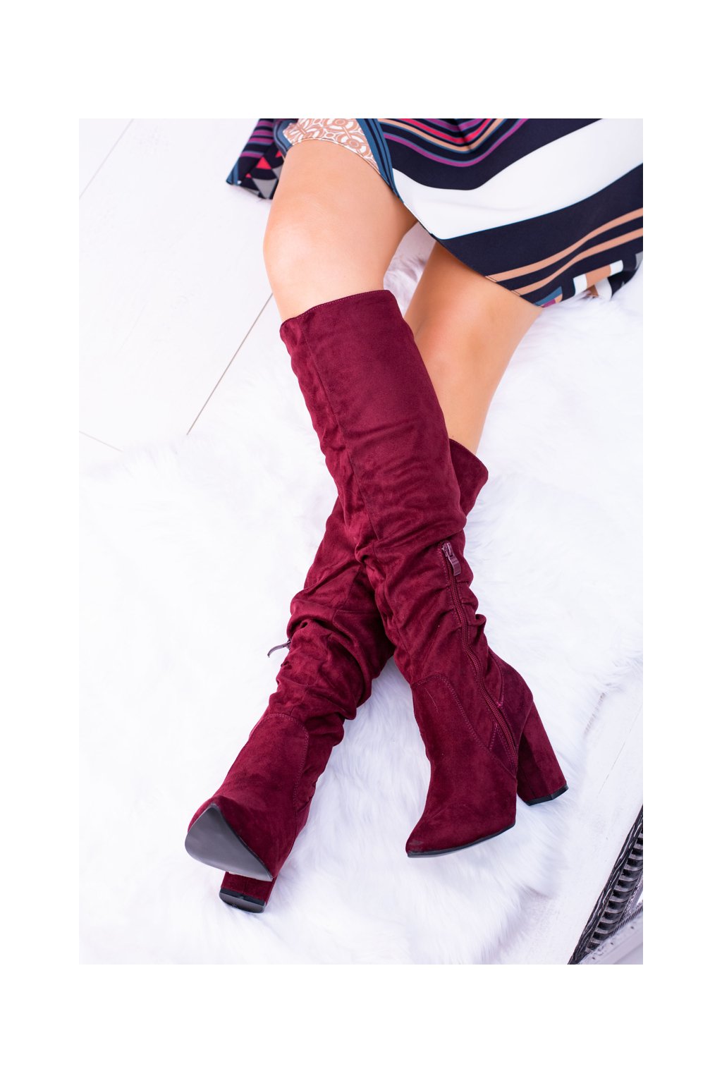 Červené dámske semišové členkové čižmy na podpätku, Nightcall 77-1 BURGUNDY