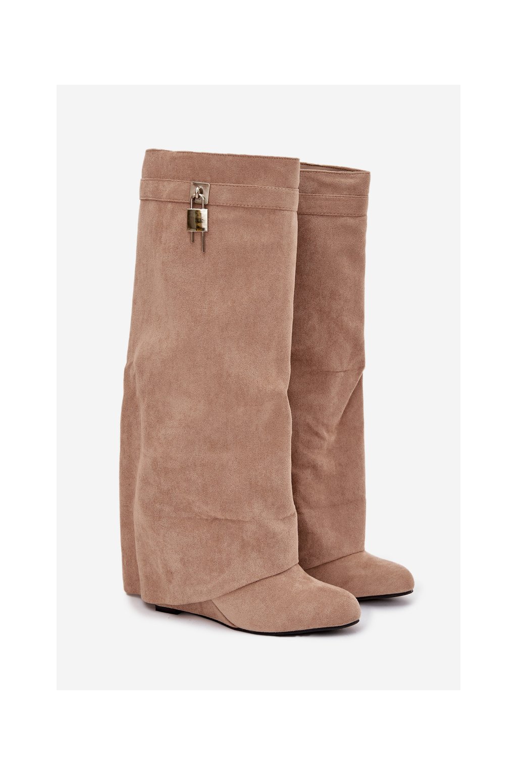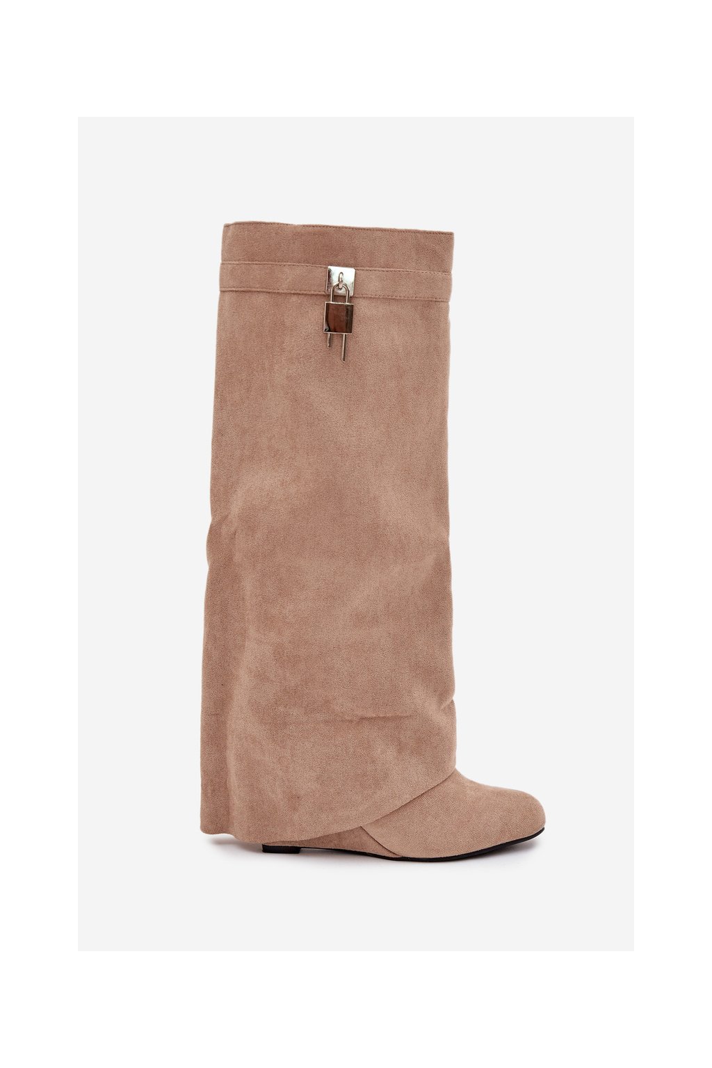 Dámské kozačky na platformě s páskem a stříbrným detailem béžové Korivelle