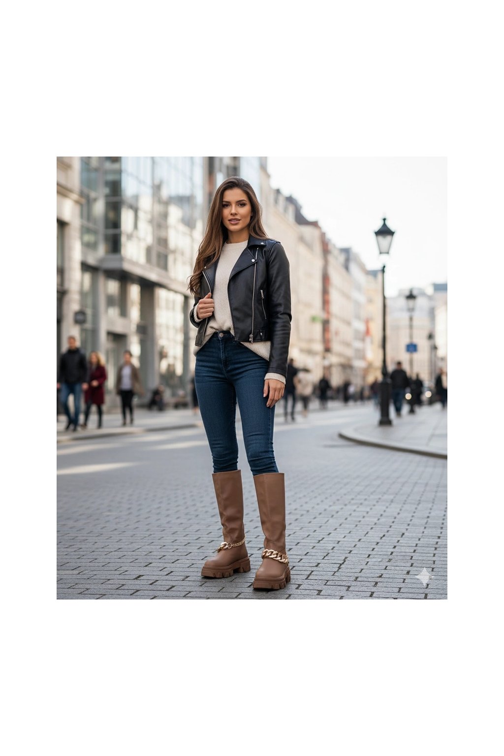 Dámske topánky čižmy hnedé kód F07 - GM F07 CAMEL 38 - GM
