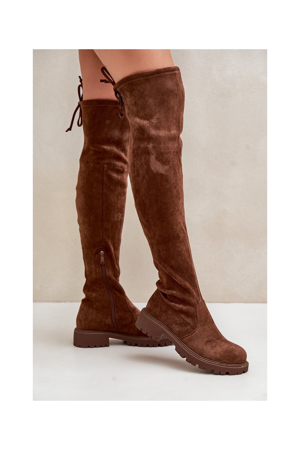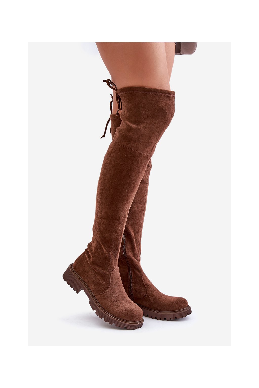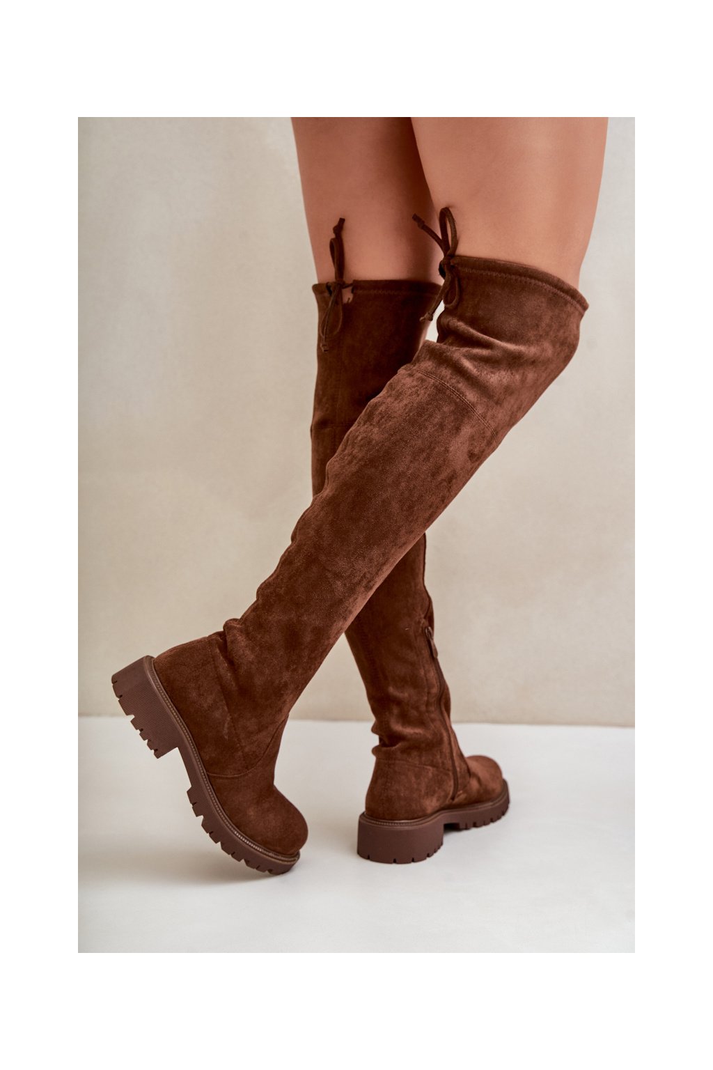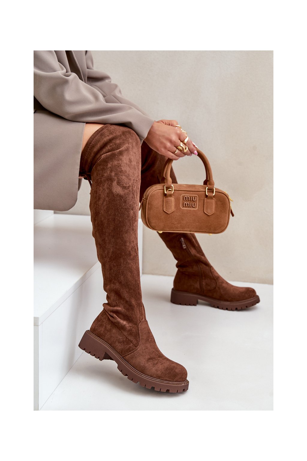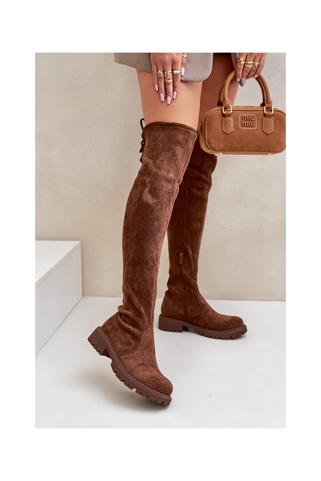 Hnedé dámske členkové čižmy z eko semišu na rovnej podrážke, kód produktu LQ-39 COFFEE