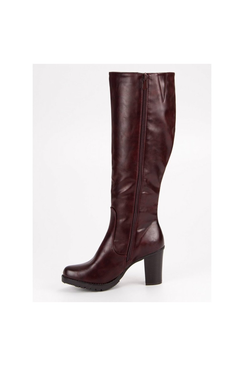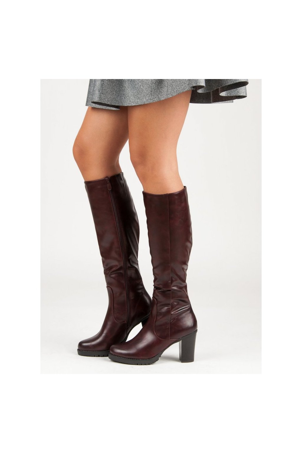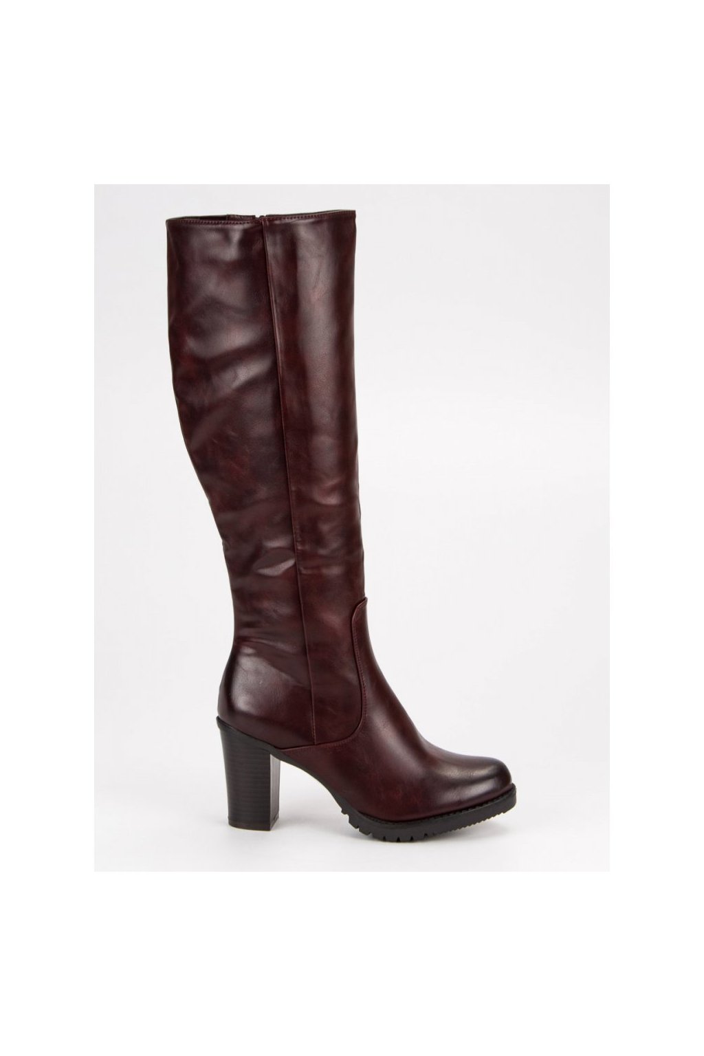 Kožené semišové kozačky na podpatku s přezkou Vyhřívané Zazoo 70156 Bordó
