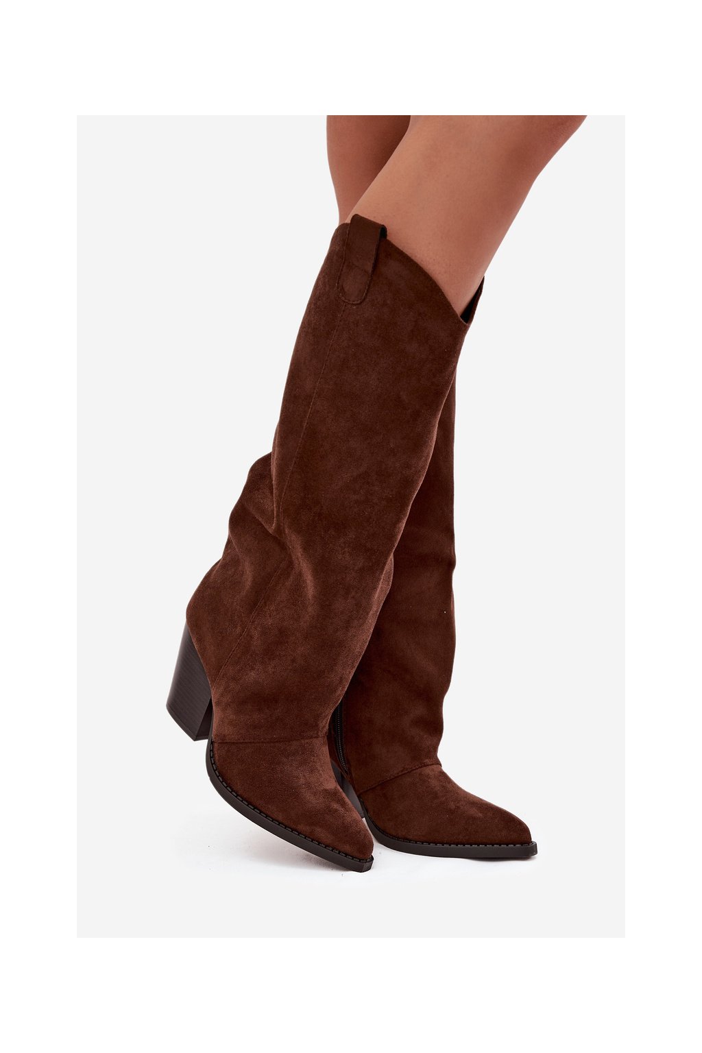 Zateplené kovbojky na podpatku z ekologického semiše hnědé Mavine
