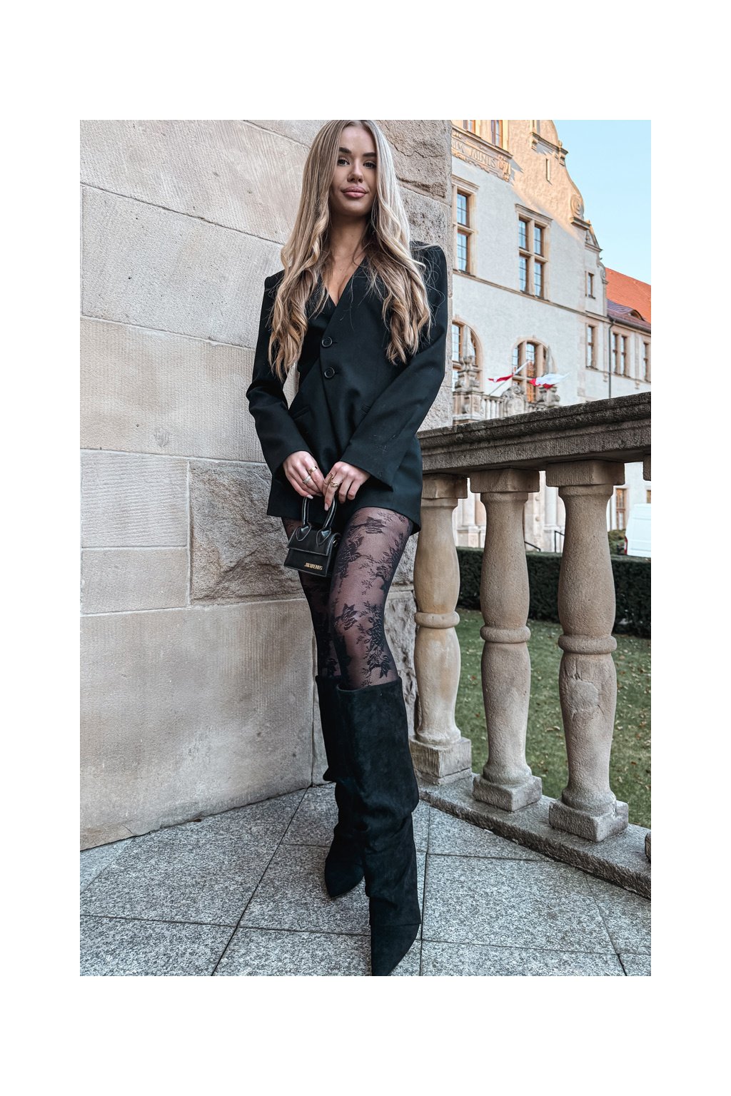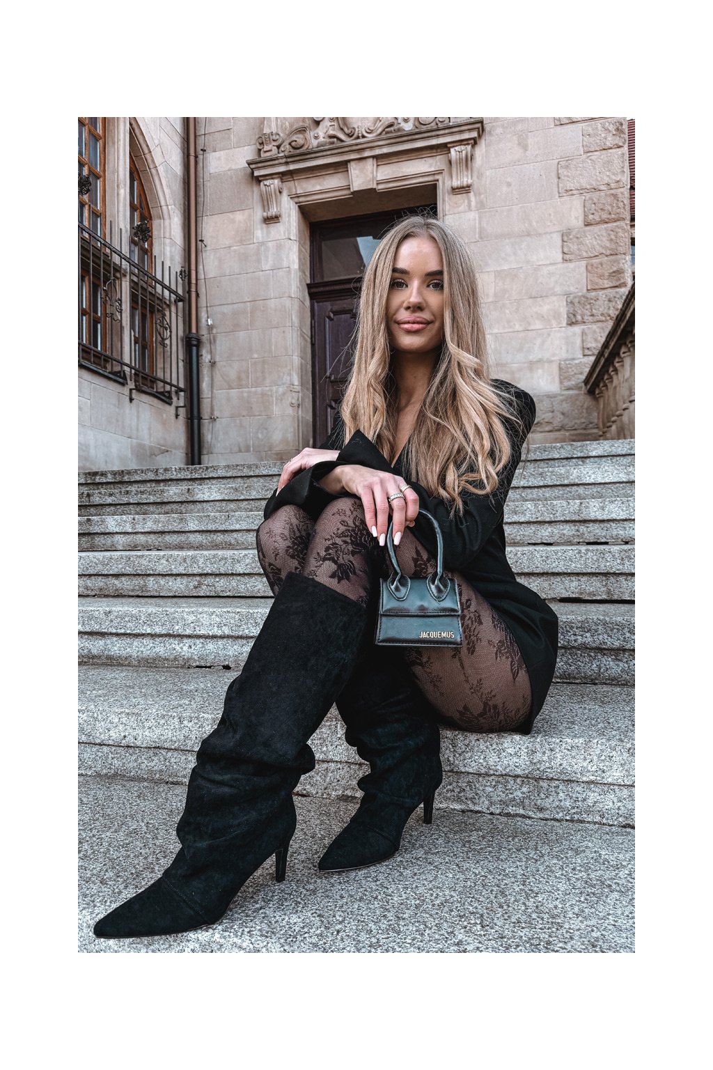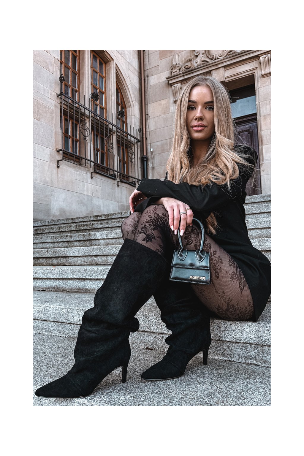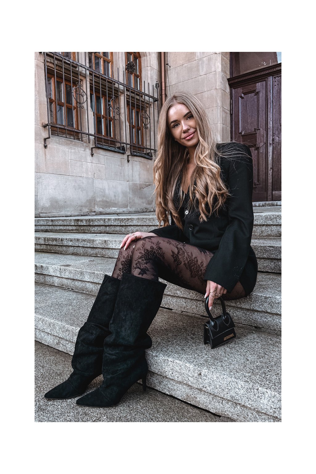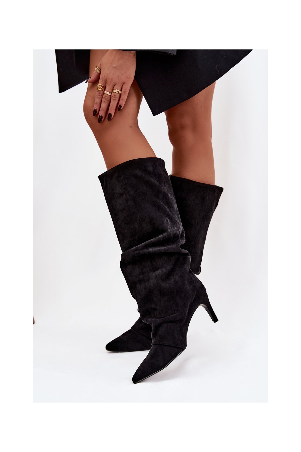 Zmačkané kozačky na jehlovém podpatku z ekzem z velúruu vyhřívané černé Mavella