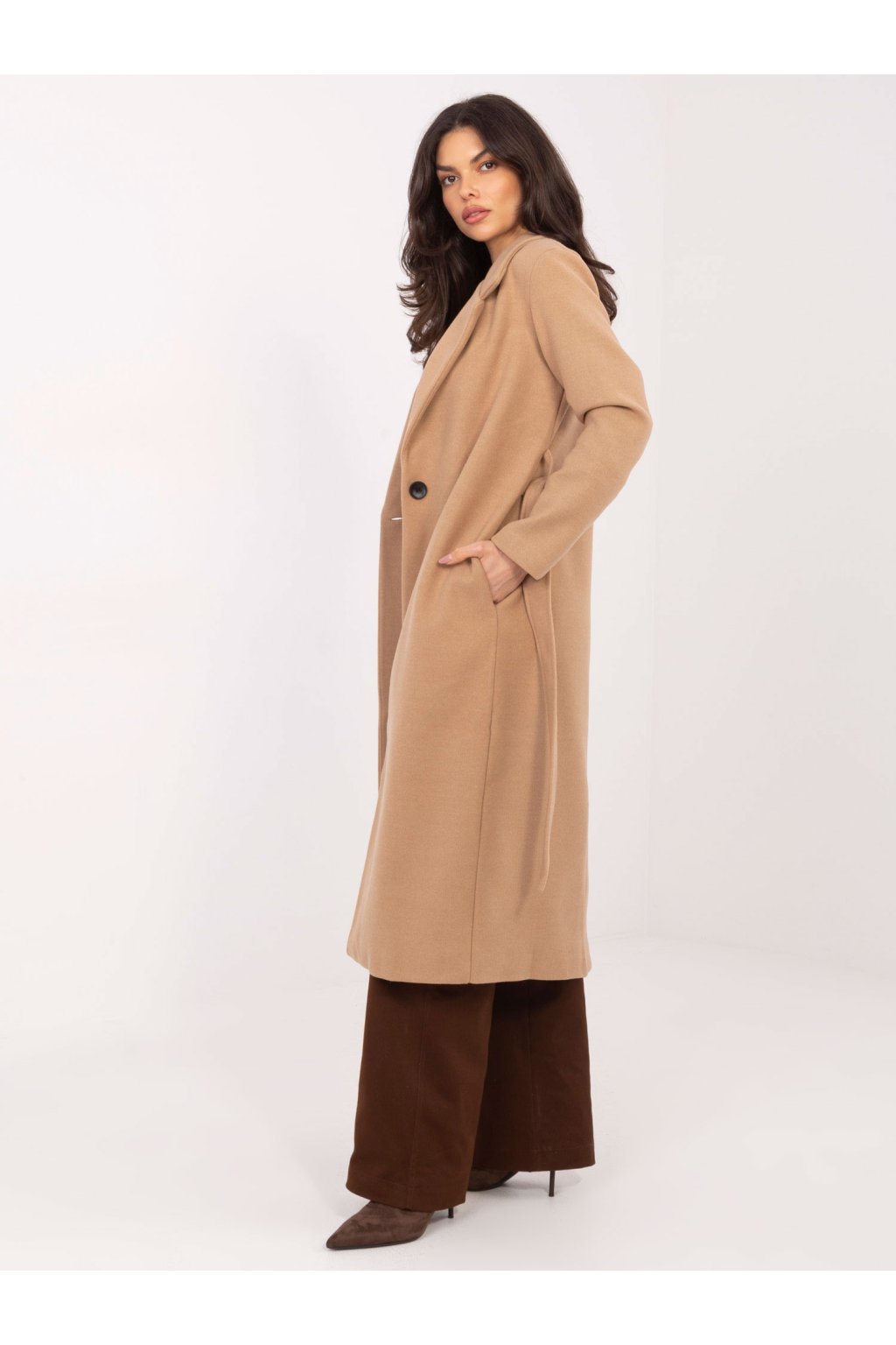 Dámsky kabát farba hnedá camel kód TW-PL-BI-5312A.85 : na temu obdobie Jeseň / zima