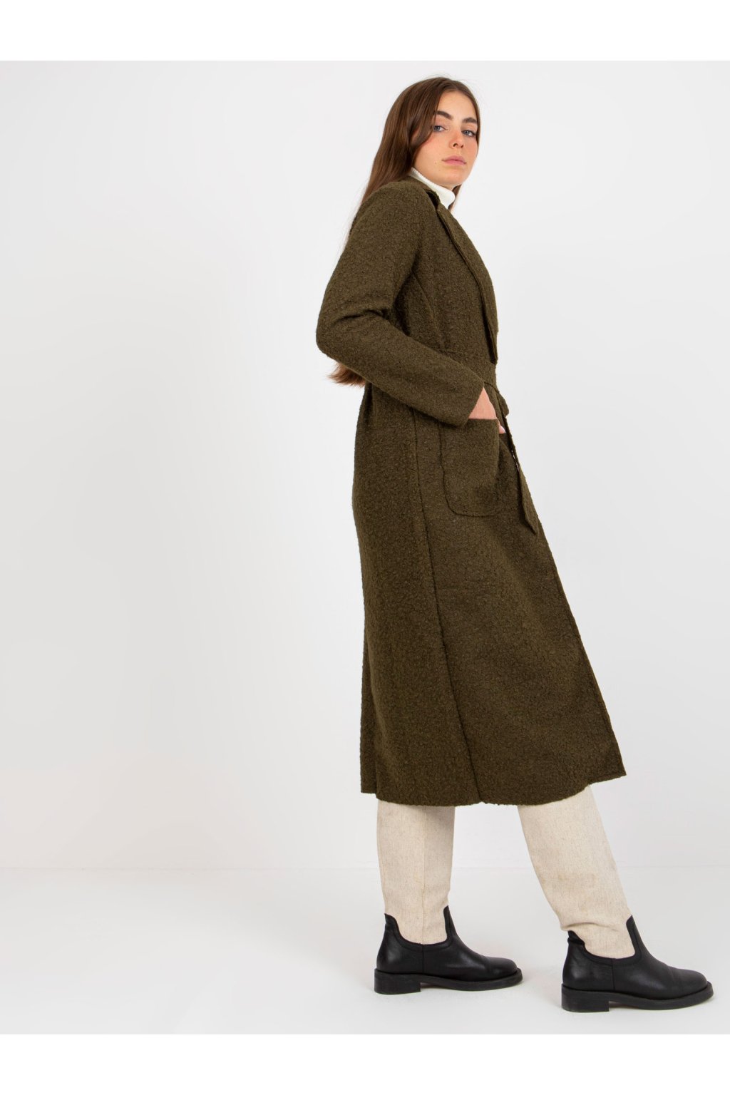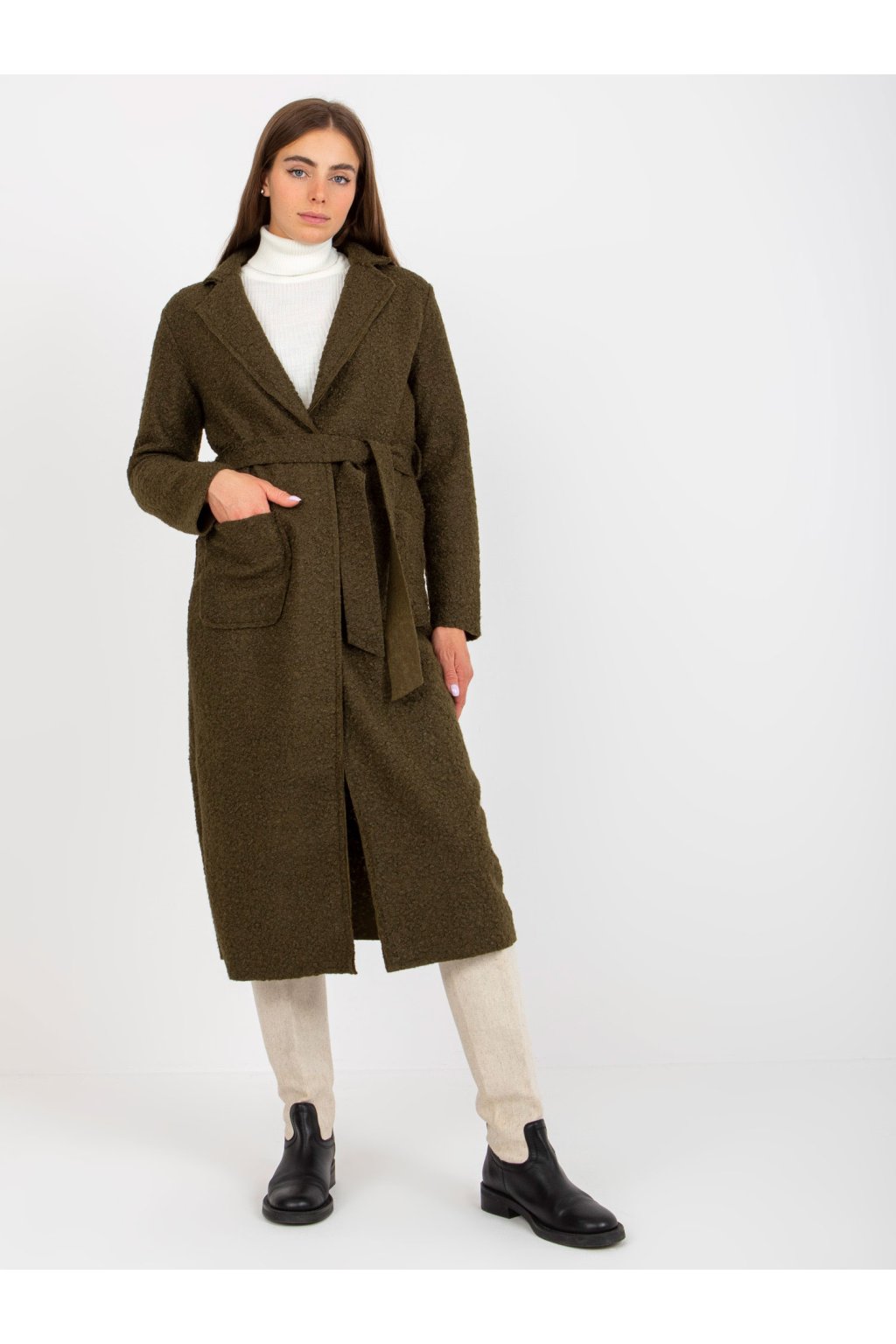 Dámsky kabát farba khaki kód TW-PL-BI-5220.63 : na temu obdobie Jeseň / zima