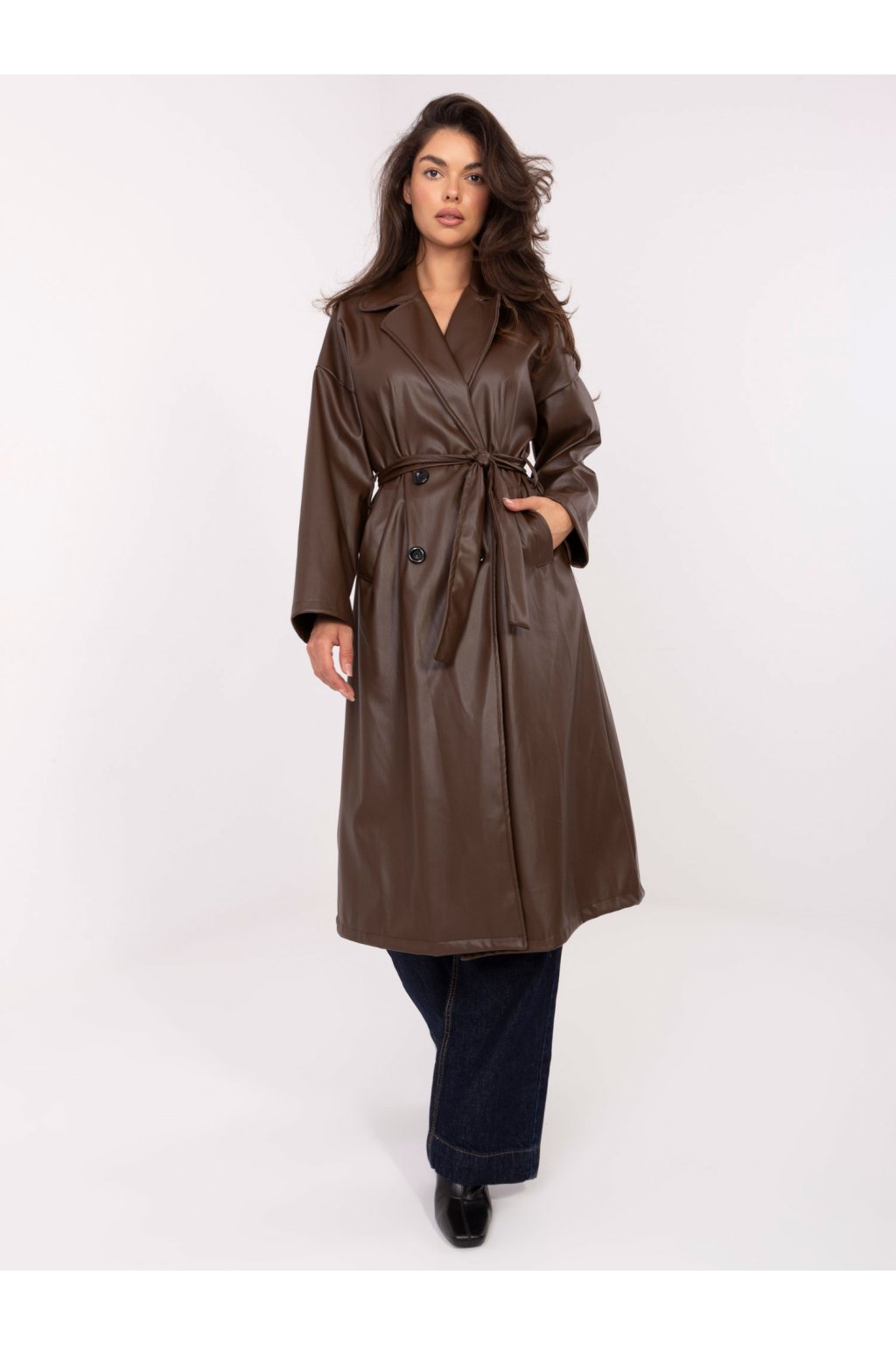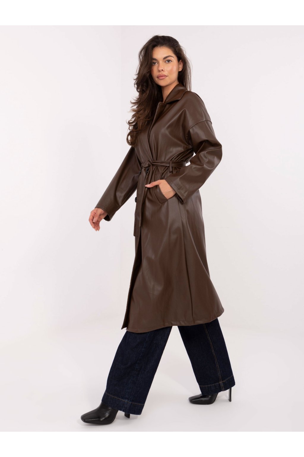 Dámsky kabát farba tmavo-hnedá kód IT-PL-A8393.81 : na temu obdobie Jeseň / zima