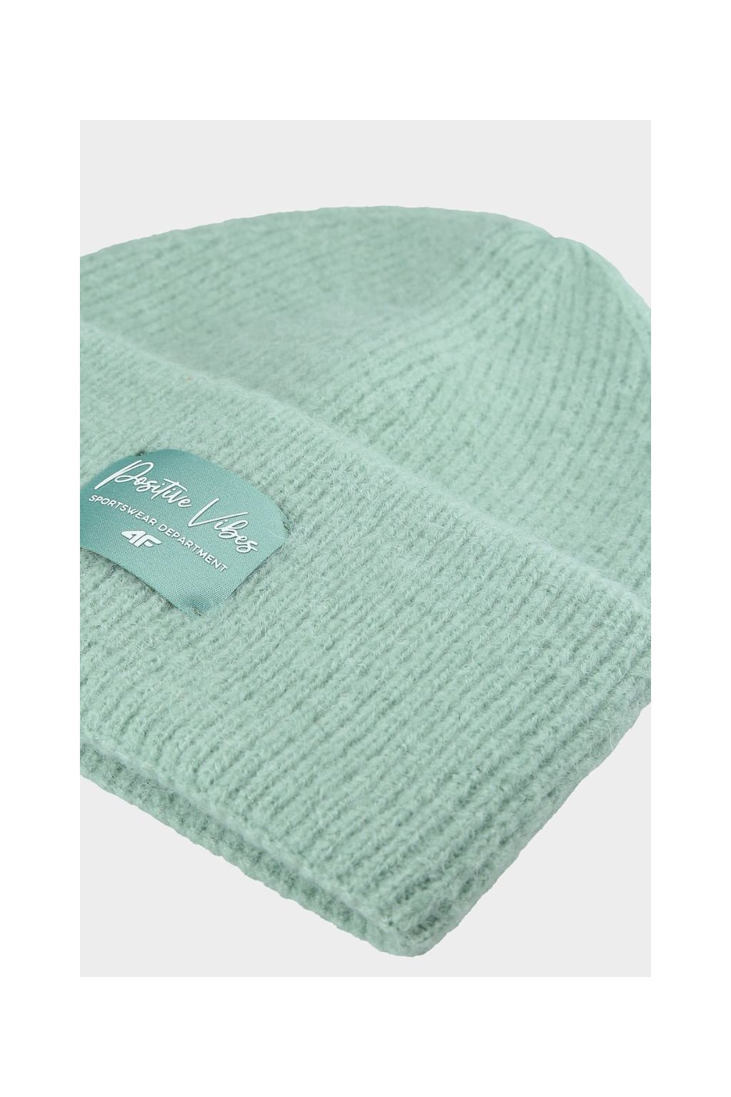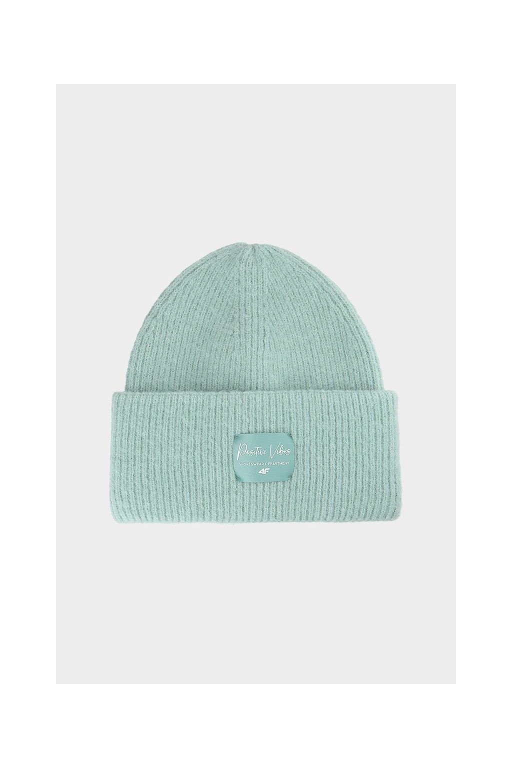 Dievčenská zelená zimná čiapka 4F CAPF415-47S s ohrnutou manžetou a nášivkou