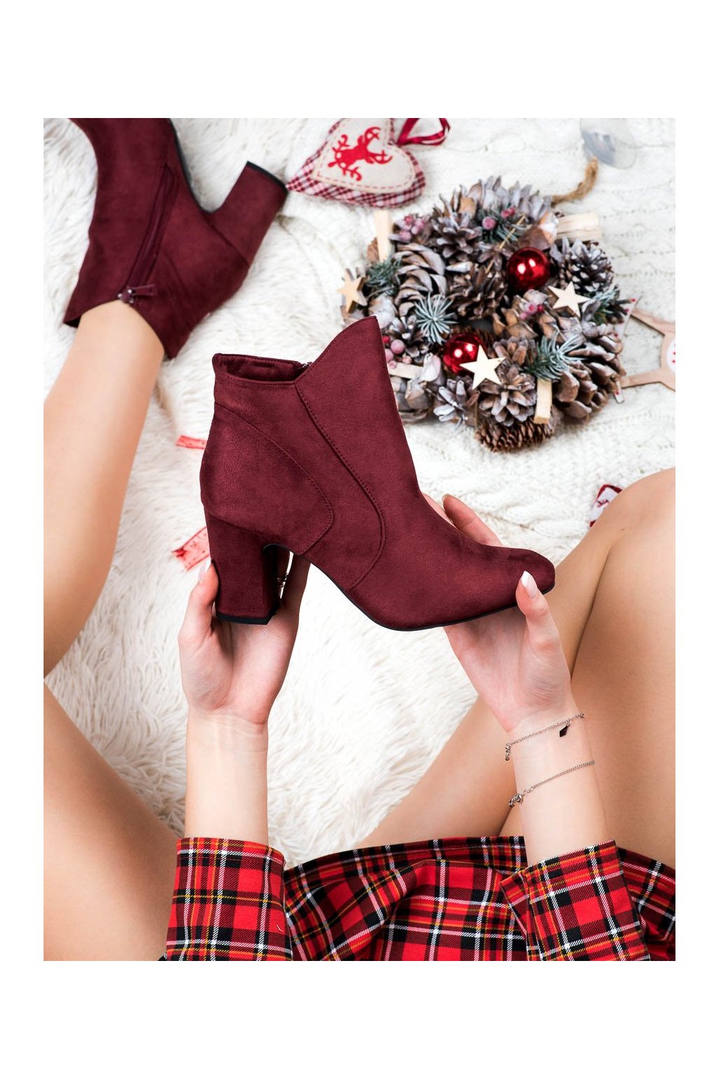Červené dámske semišové topánky Kylie NJSK K1809810BUR - jesenná/zimná kolekcia